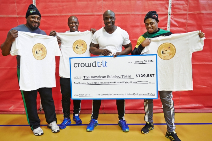 당시 자메이카 봅슬레이 팀이 1988 올림픽에 참여 자격이 주어진 일화를 바탕으로 한 영화인 쿨 러닝스(Cool Runnings)의 팬이자 도지코인 재단의 책임자였던 리암 버틀러(Liam Butler)는 모금 캠패인을 기획했다. 이로 인해 36,000달러 상당의 도지코인이 모금되었으며, 당시 도지코인의 법정화폐 환산 가치가 폭등하여 결과적으로 더욱 많은 돈이 모금되었다. 도지코인 커뮤니티는 이 두 선수 이외에도 자금난을 겪고 있던 올림픽 출전 자격자인 시바 케샤반(Shiva Keshavan)역시 후원하였다.