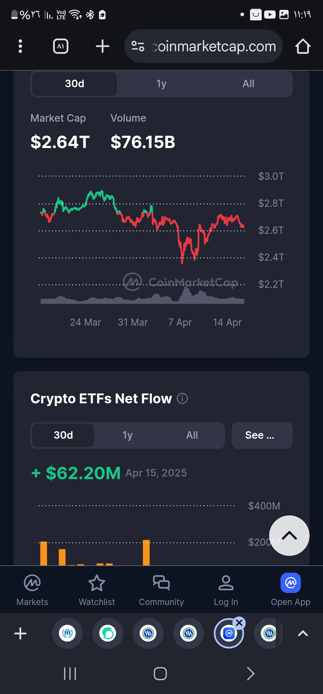 استقرت اسعار العملات الرقمية في 5ايام على التوالي فوصل الماركت كاب الى 2.64 تلريون دولار