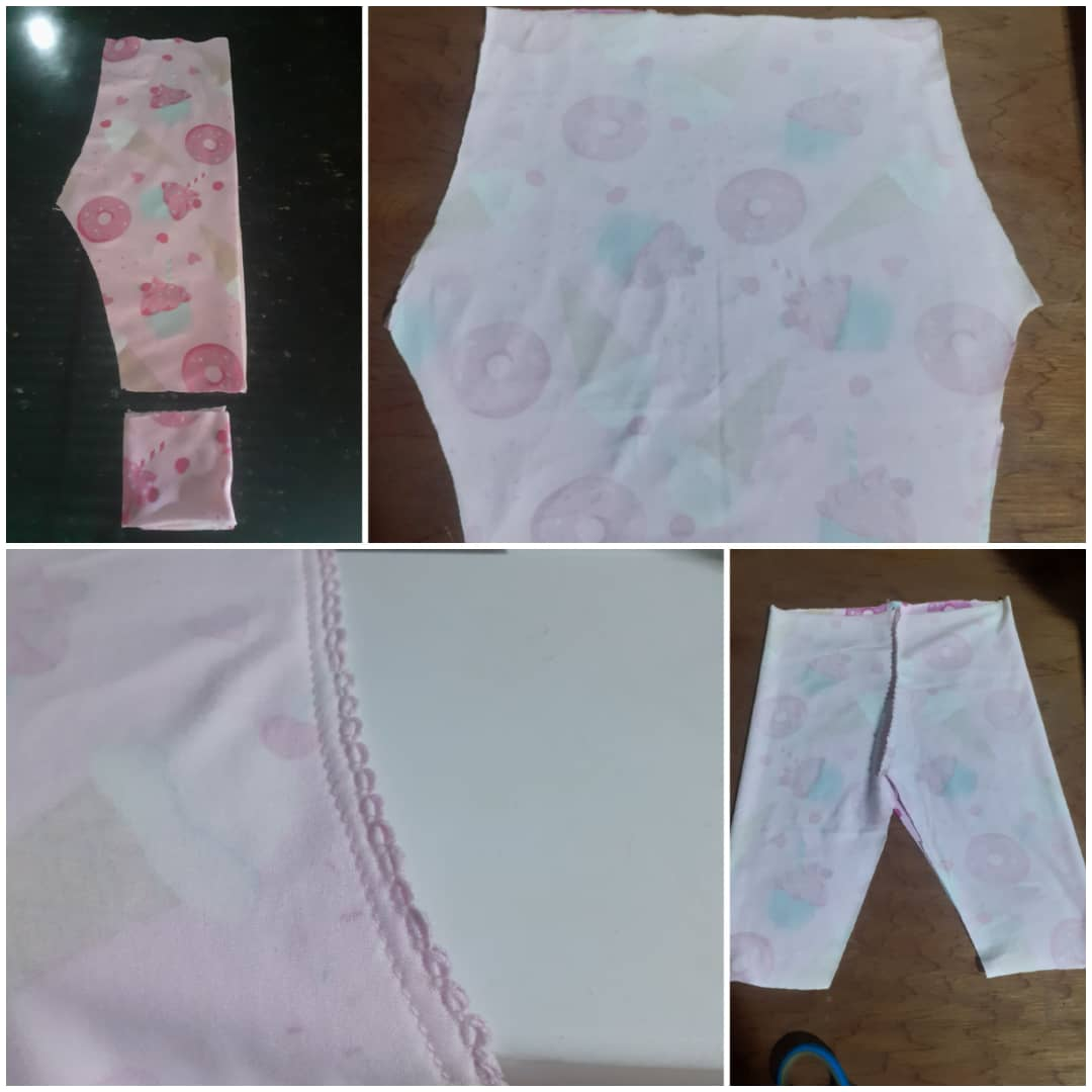 Preparando la camisitaY para terminar el conjunto se recorta la tela del pantaloncito y se unen las partes con la máquina de coser, con esto queda terminado el encargo. 😄