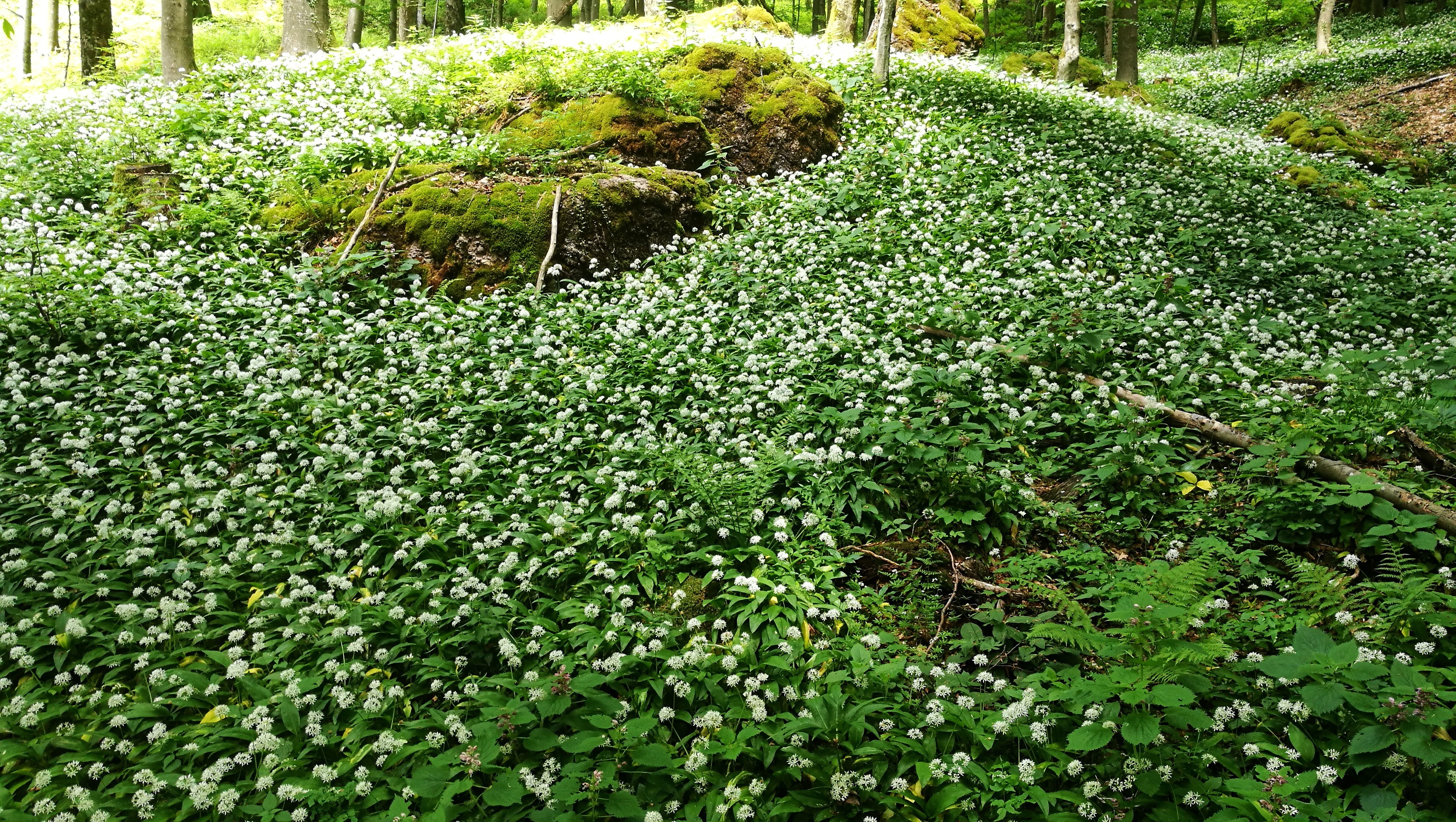 With blooming wild garlic dotted everywhere and with the warm sun shining right on top of the little hill, I like this one very much. There's some dead wood ruining the picturesque place, but it's an undisturbed part of the forest :)