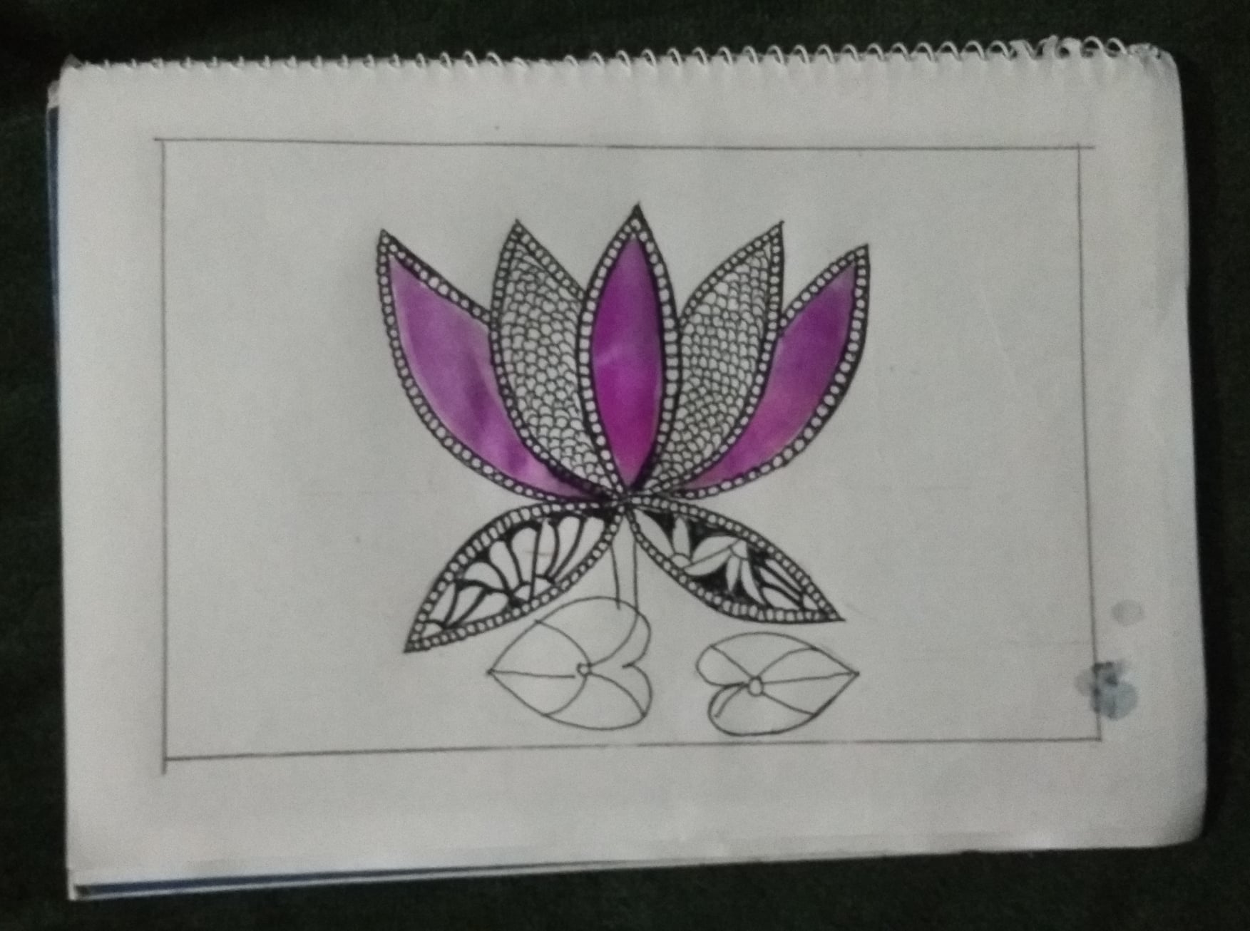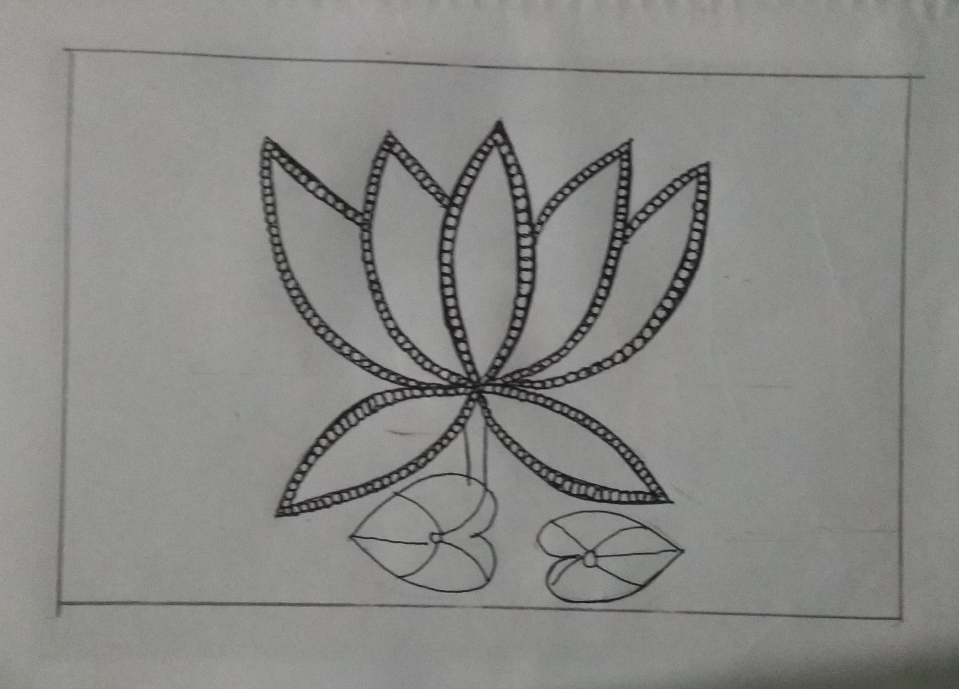 এরপর শাপলার চারটি পাপড়িতে কিছু পাতার ডিজাইন মতো এঁকে নিয়েছি।