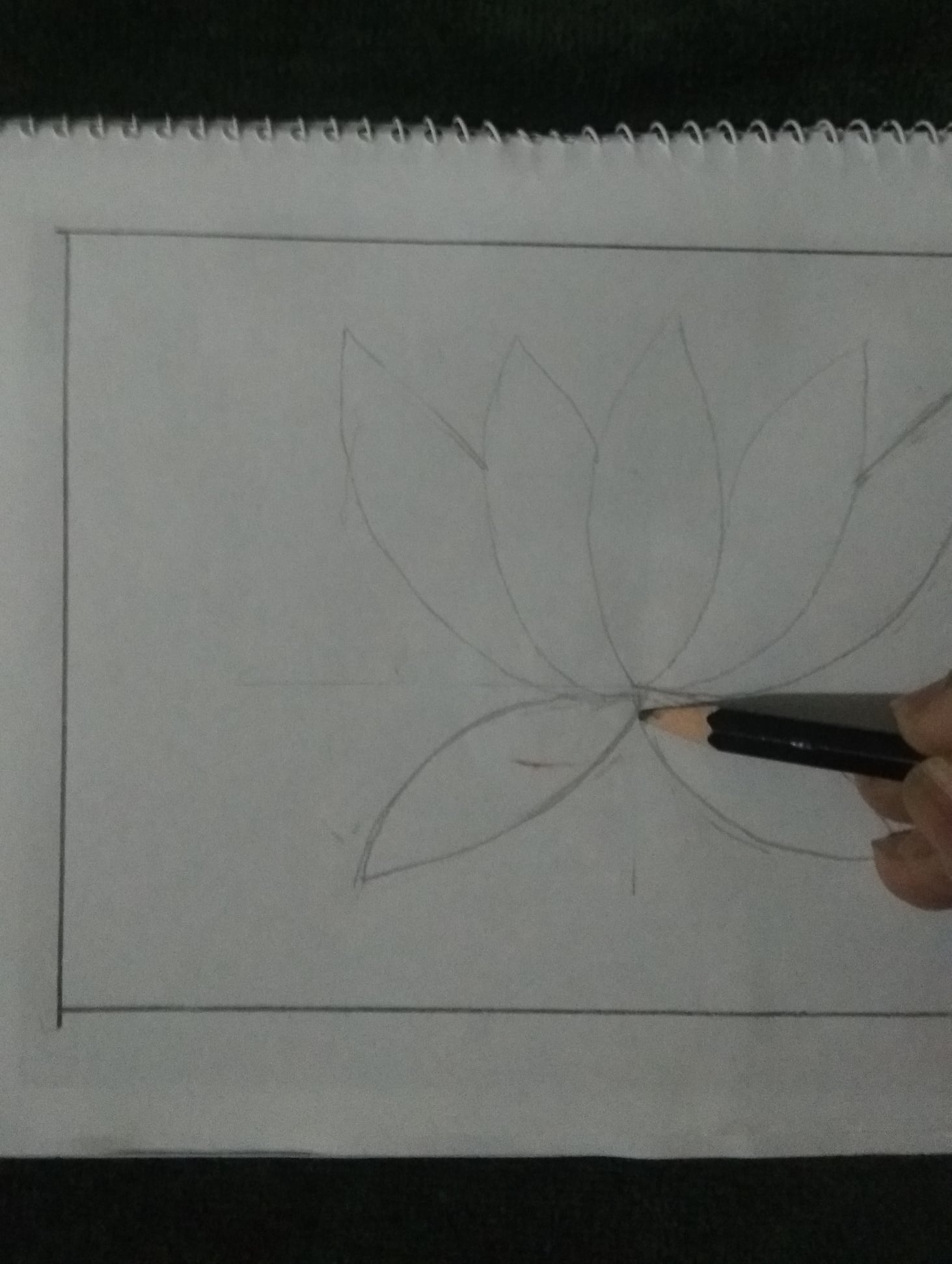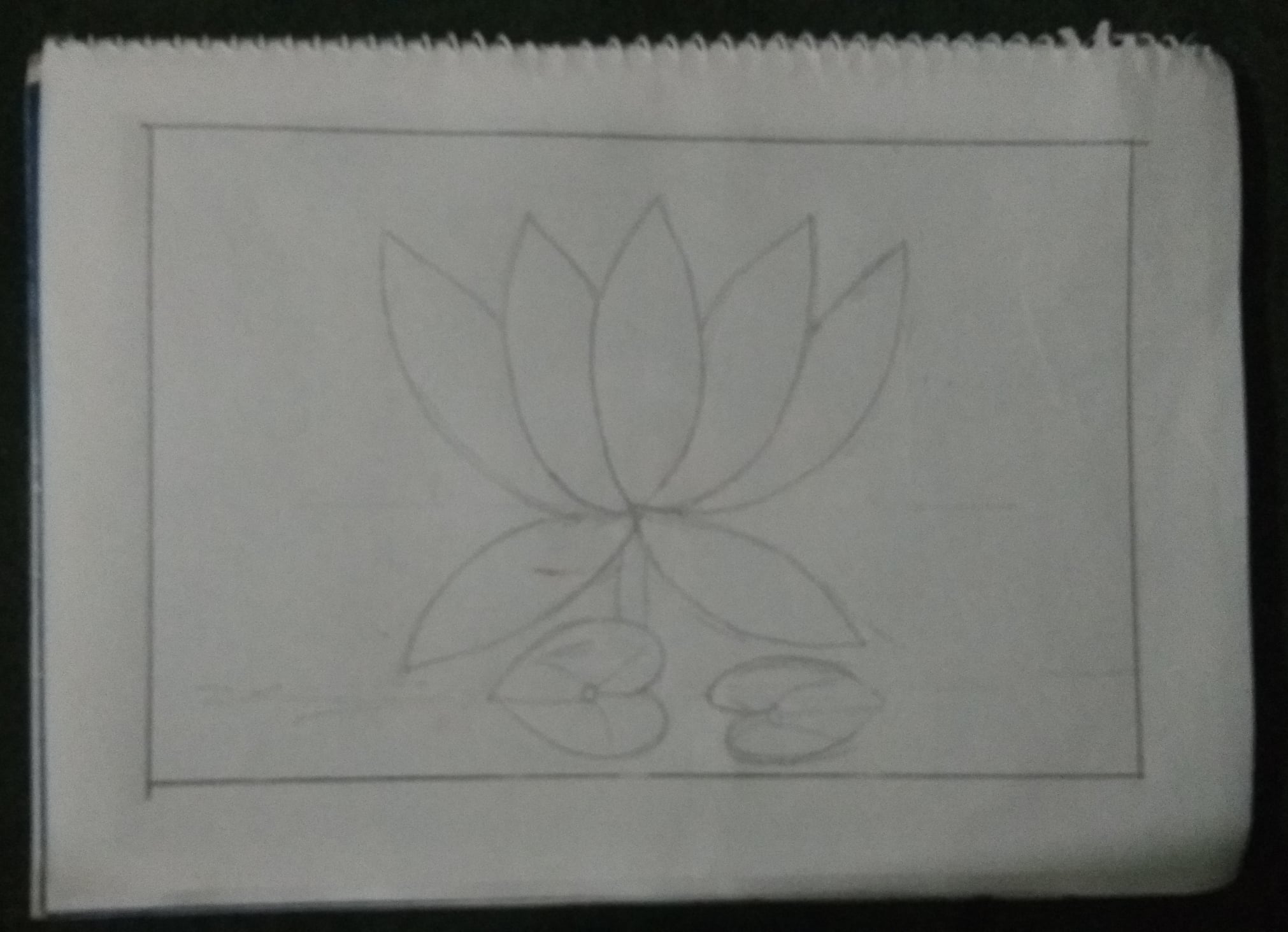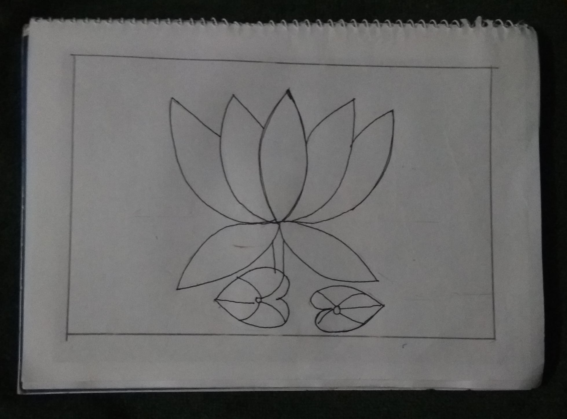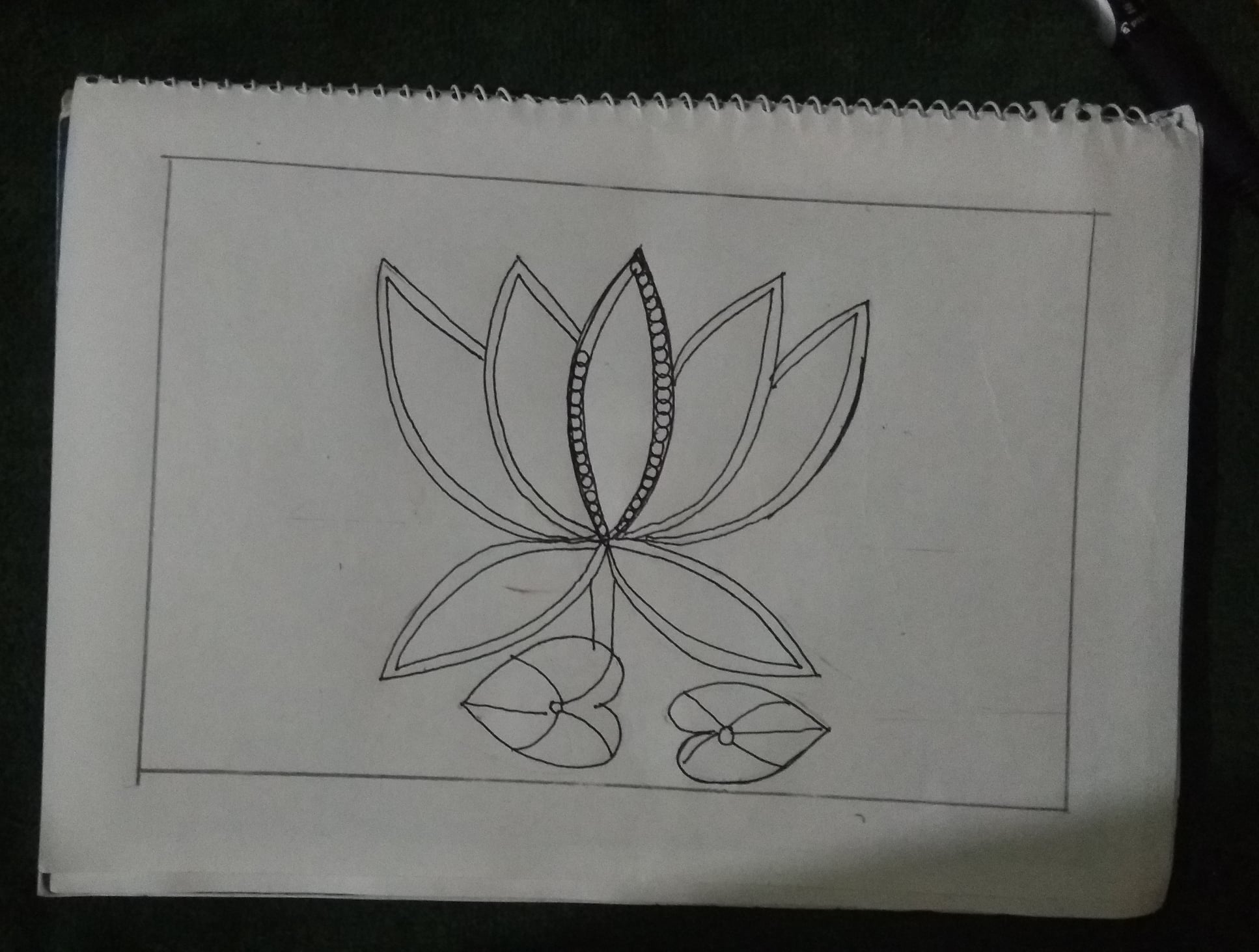 একটি শাপলা ফুল পেন্সিল দিয়ে এঁকে নিয়েছি। এরপর পেন্সিলের দাগের উপর কালো জেল পেন এঁকে ডিপ করে নিয়েছি।
