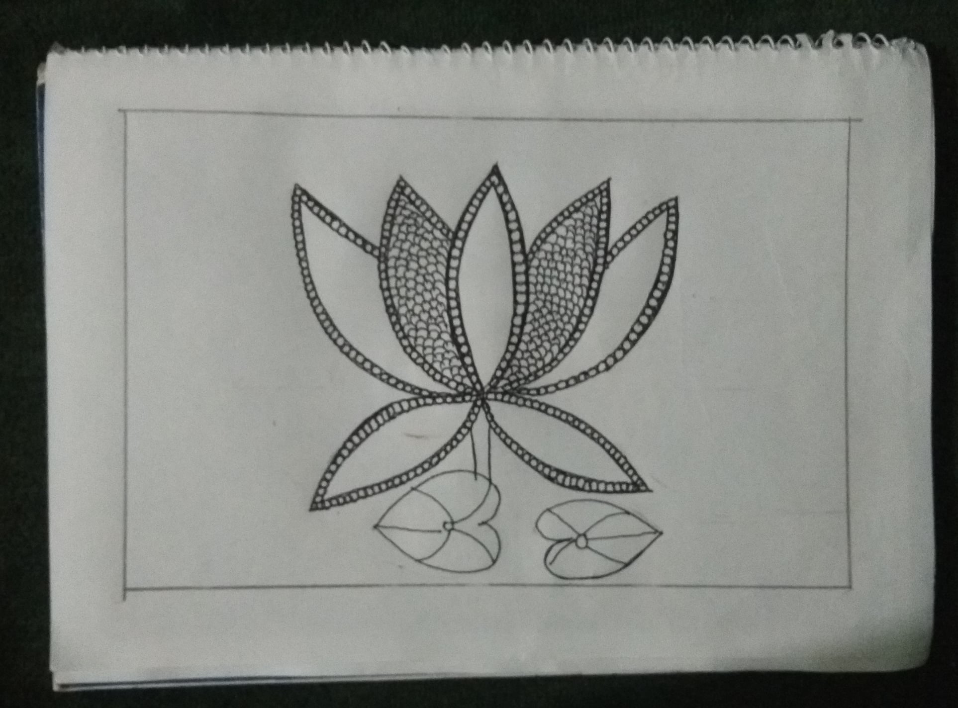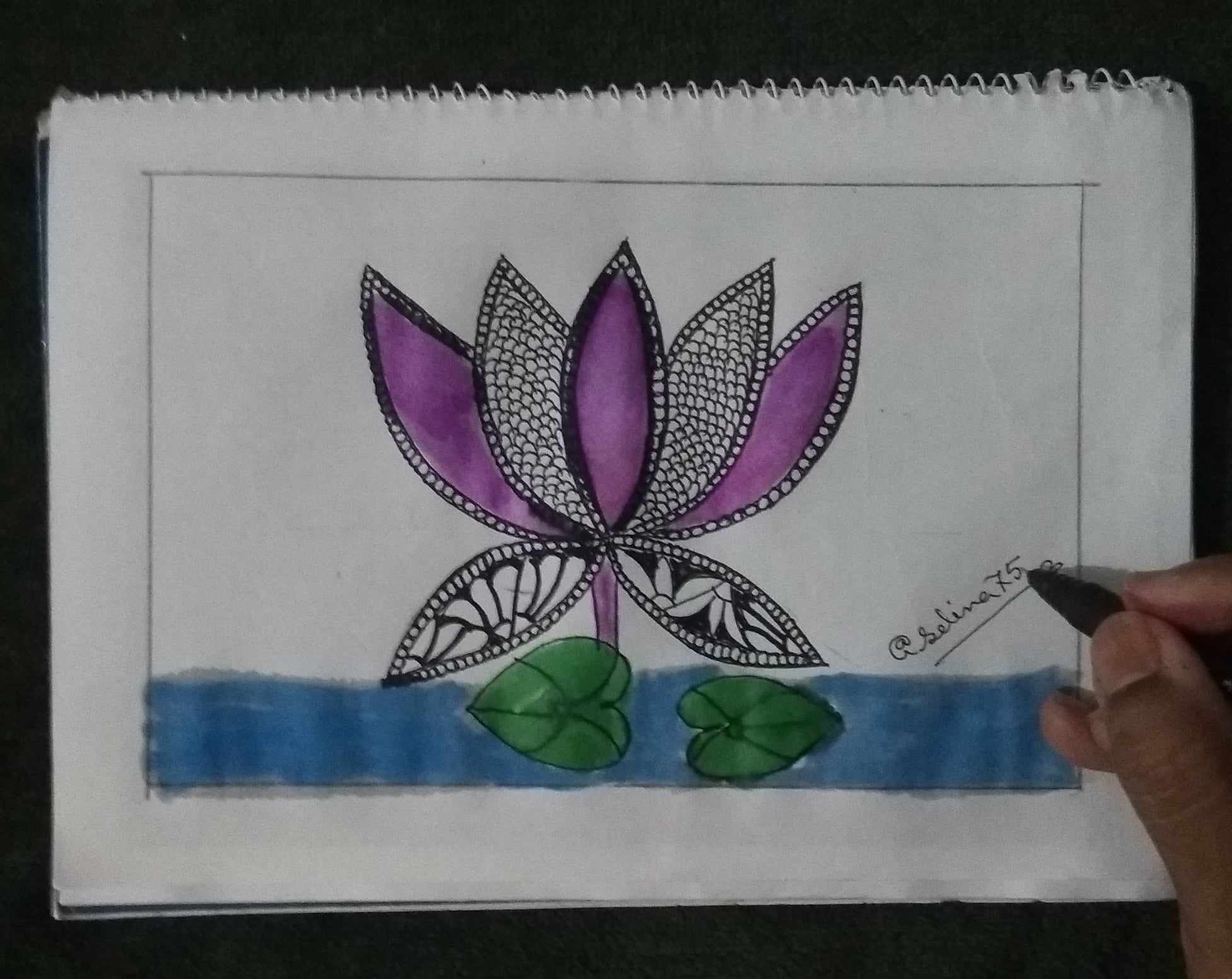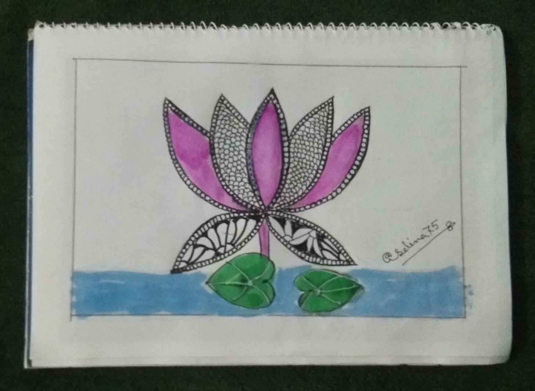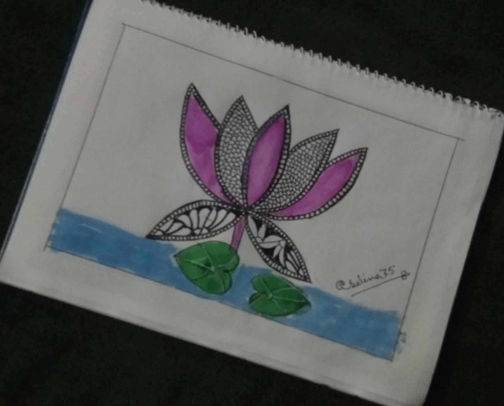 একটি শাপলা ফুল পেন্সিল দিয়ে এঁকে নিয়েছি। এরপর পেন্সিলের দাগের উপর কালো জেল পেন এঁকে ডিপ করে নিয়েছি।