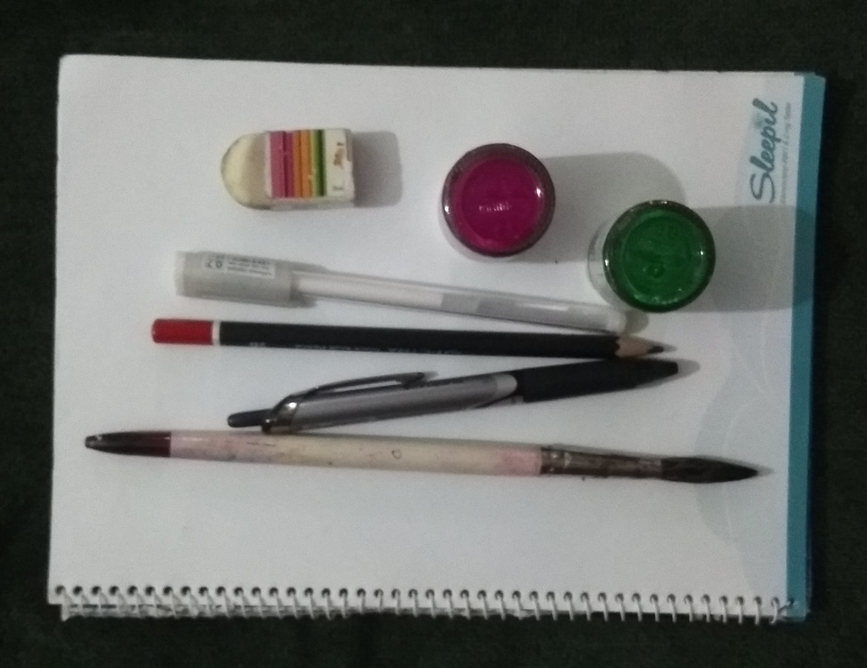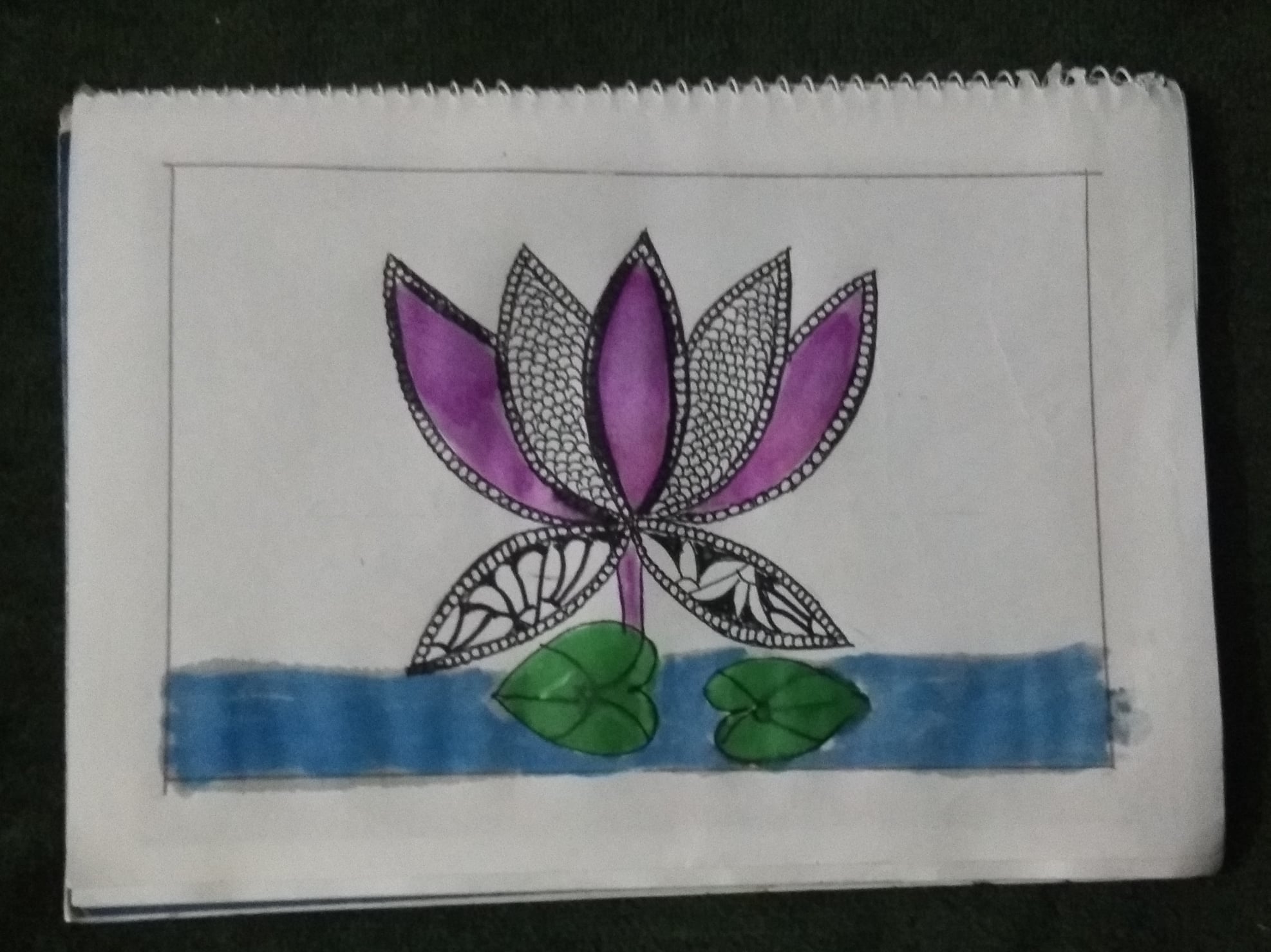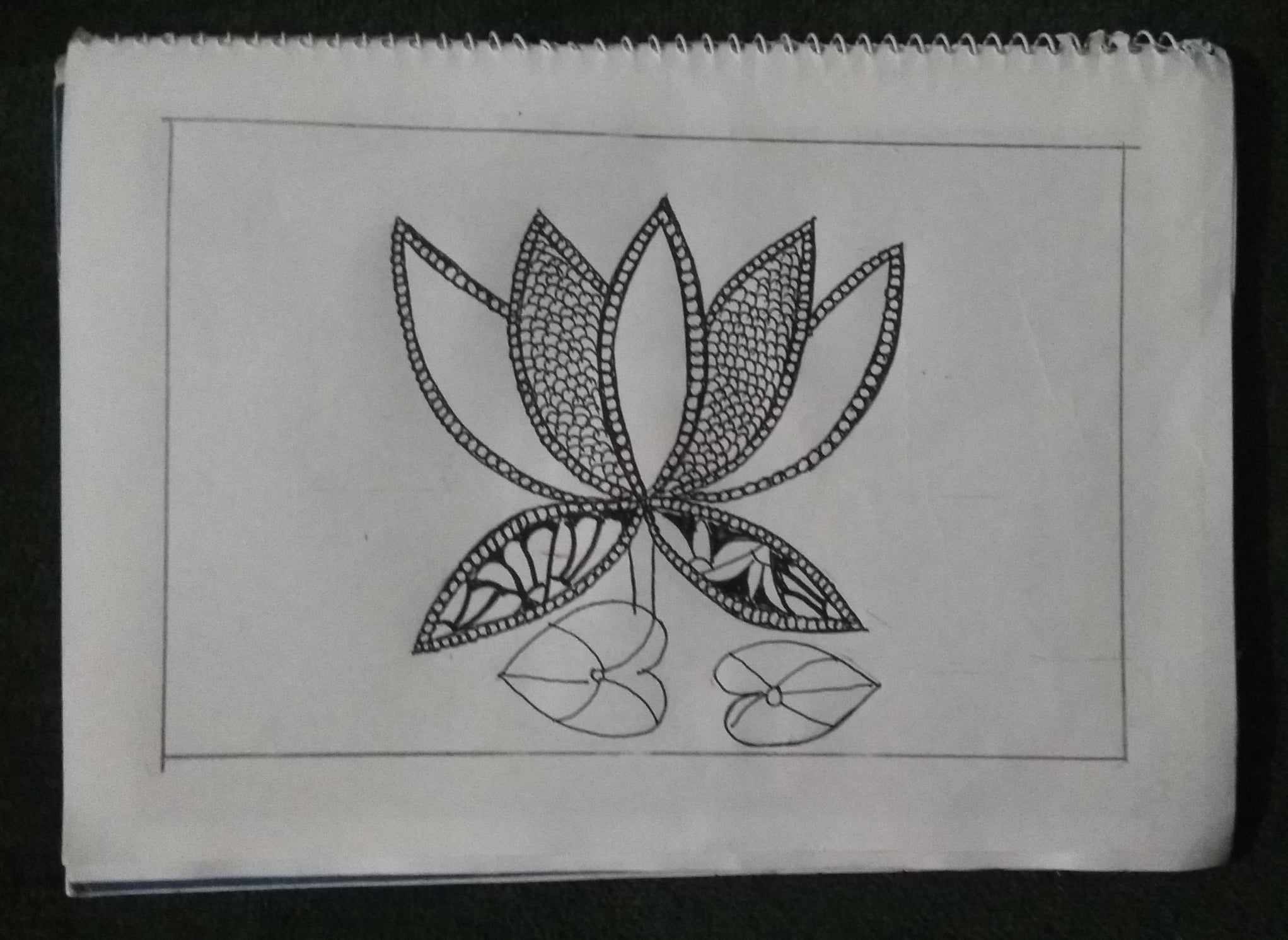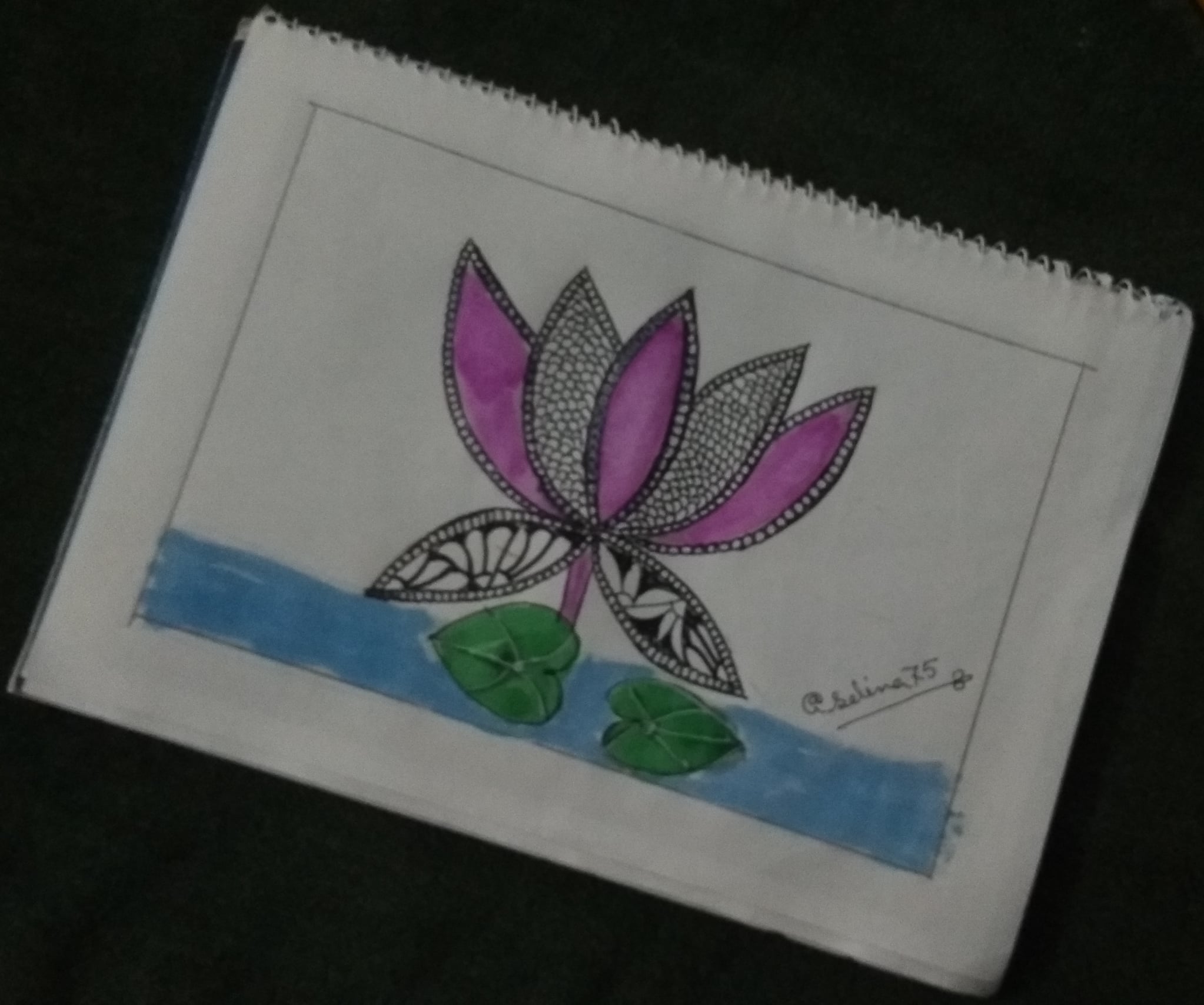 একটি শাপলা ফুল পেন্সিল দিয়ে এঁকে নিয়েছি। এরপর পেন্সিলের দাগের উপর কালো জেল পেন এঁকে ডিপ করে নিয়েছি।