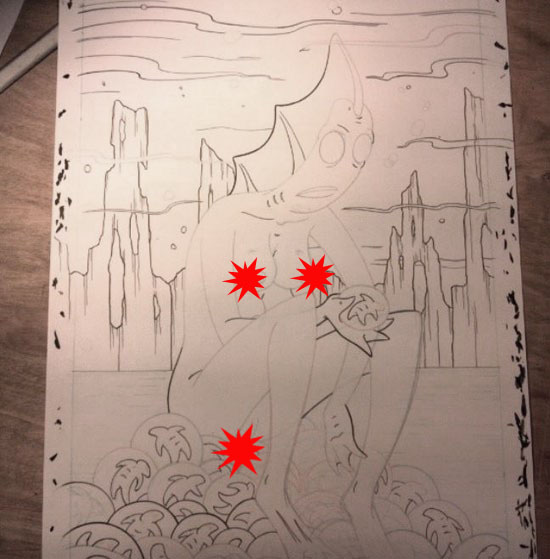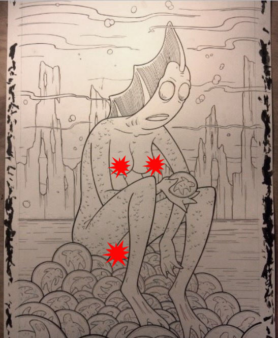 If I recall correctly, this was only the second time I’ve ever illustrated nipples...(nipples censored here. If you wanna see the nipples you'll have to check it out on Makersplace