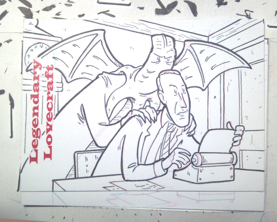 This is the second H.P. Lovecraft set they put out. I was late getting in on the first set but MonsterWax had me do up some sketch cards as bonuses to be inserted randomly in packs of the trading cards. I did the usual Cthulhu and Lovecraft himself on some,