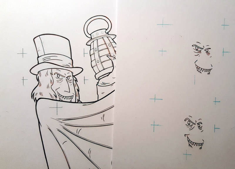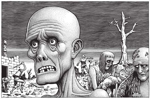 This'll be a gif with the main character standing in the fog mysterious and eerie. Which I felt would be a perfect spot to try a version of a Basil Wolverton type uneven grey background ...this illustration of his is what I mean...