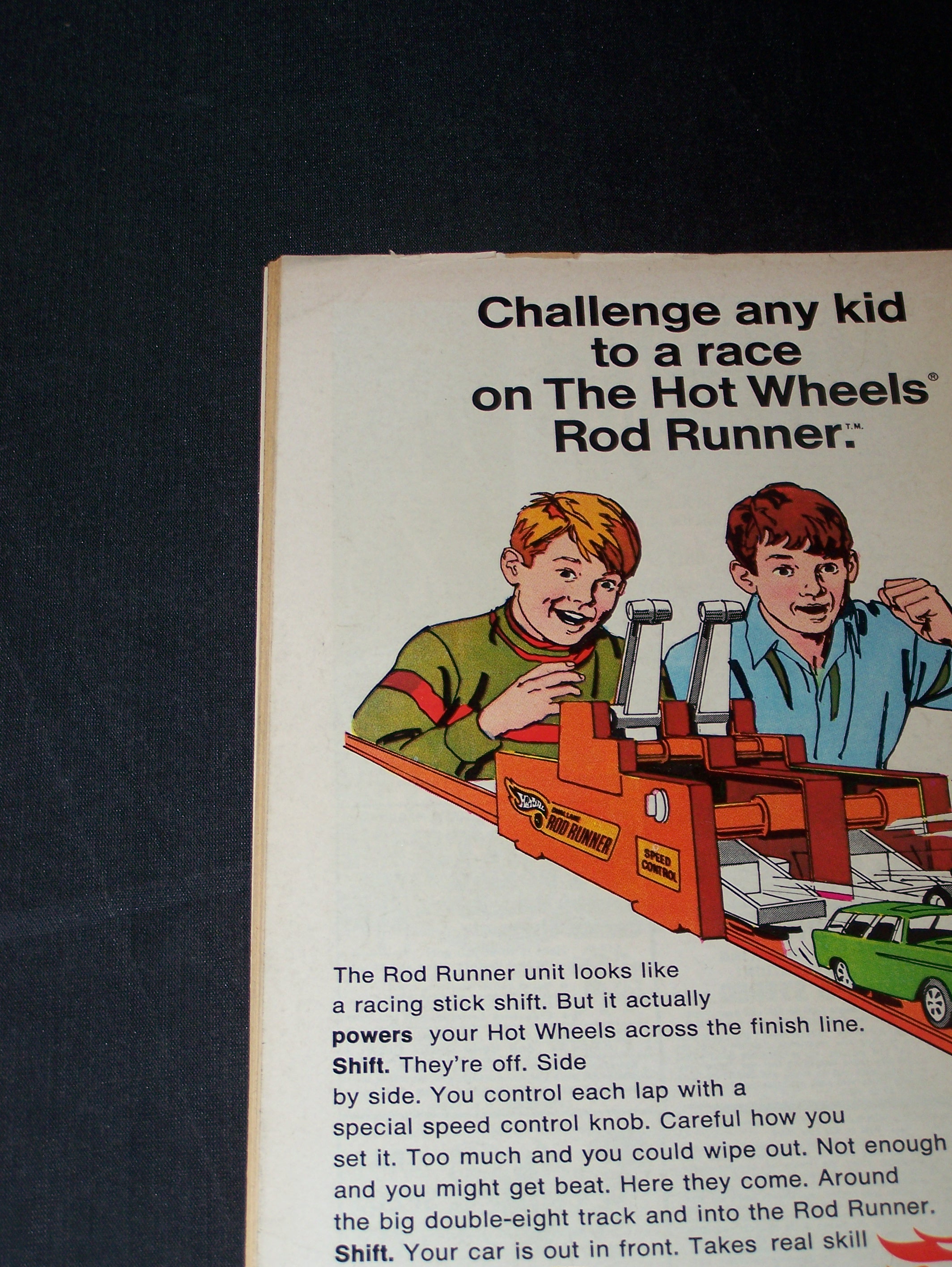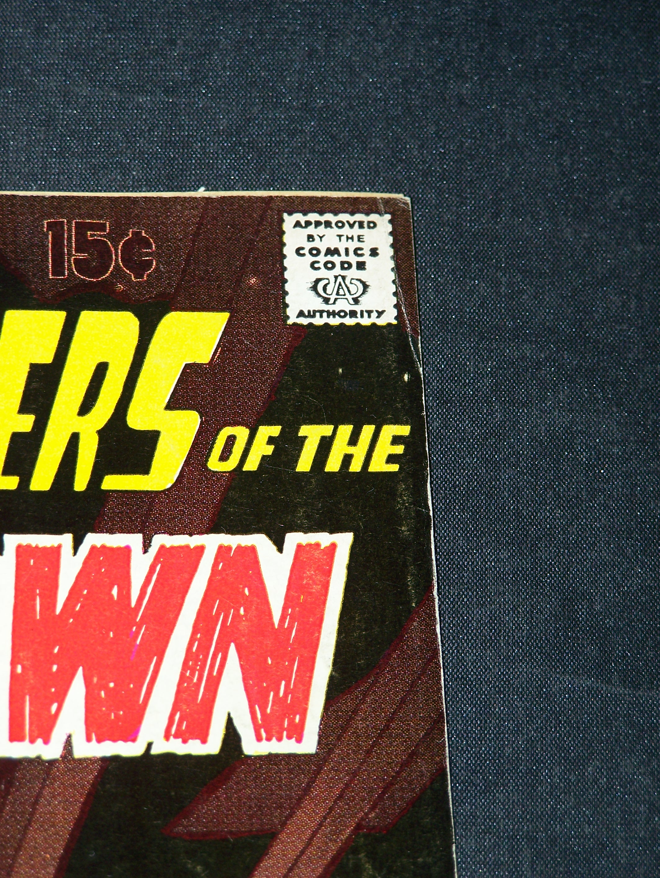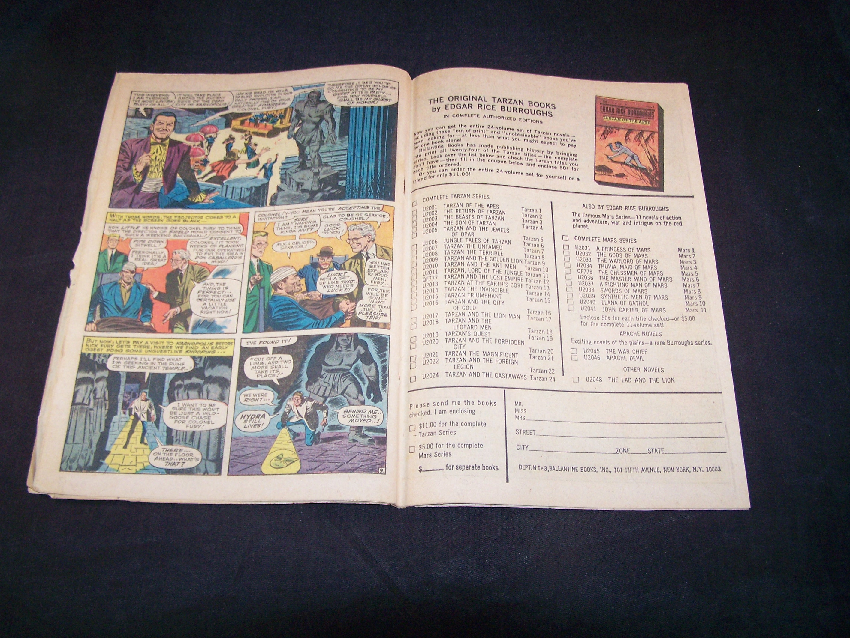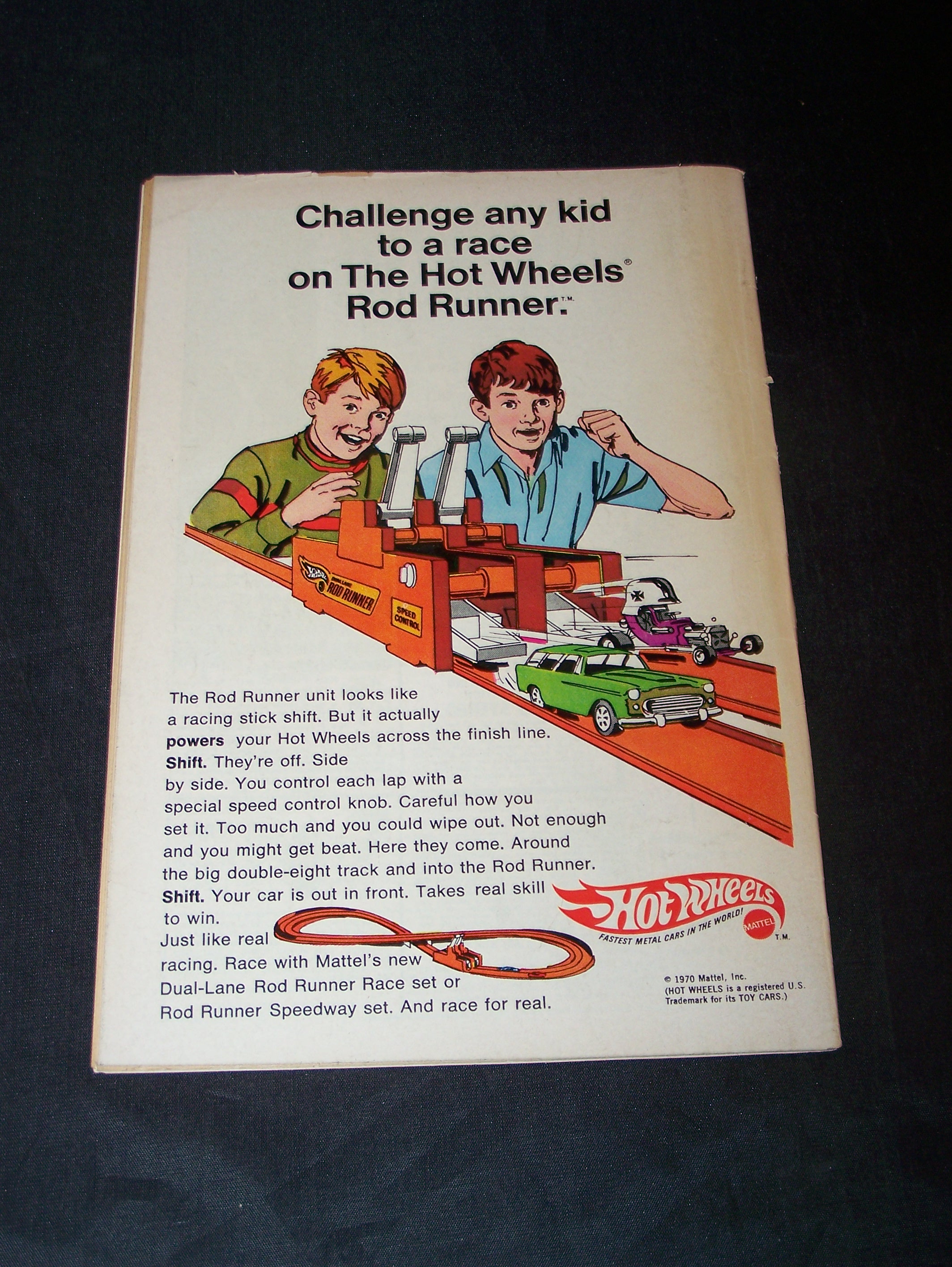 The second book in this pressing example is Strange Tales issue 150. This book also has numerous problems including a 1/4″ spine roll, missing piece from the upper left corner of the cover, red ink stain on the price, red ink stain on the back cover, a missing centerfold page, along with many creases and fold.