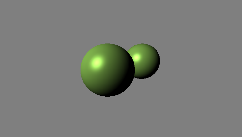 If our individual Sphere primitive returns a distance to a sphere, all we need to do is call it multiple times for each sphere, and take the minimum of the two distances as the distance to the overall scene. GLSL includes a handy min() function that returns the minimum of two floats.