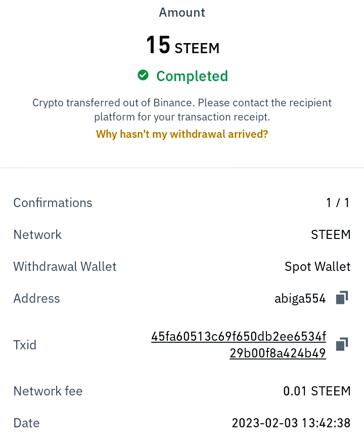 Thanks for the notice and for your kind support to @abiga554's case dear brother... As can been seen I'm also moving towards club100 and can't send her STEEM directly. So I will be sending her STEEM from my Binance account