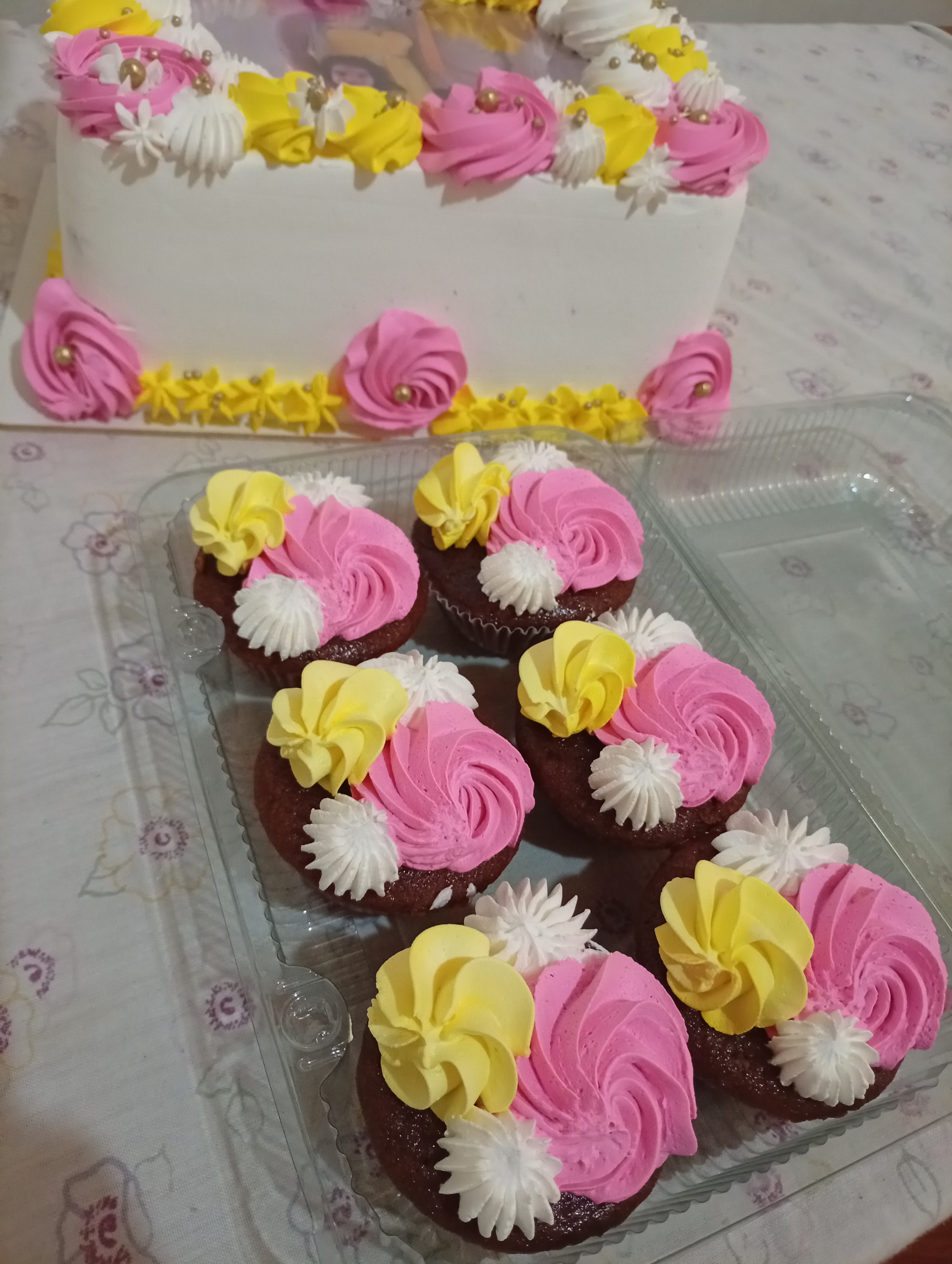 El tercer pedido del día fue un pastel rectangular para 25 personas, 6 cupcakes y 40 tequeños, que por cierto use la receta que la amiga @nahela nos enseñó en el desafío, fue sabor marmoleada con relleno de crema diplomática, estos son nuevos clientes que llegaron gracias a las recomendaciones que me hacen quienes ya han probado mis pasteles y quedaron muy contentos con el pastel y con los tequeños.