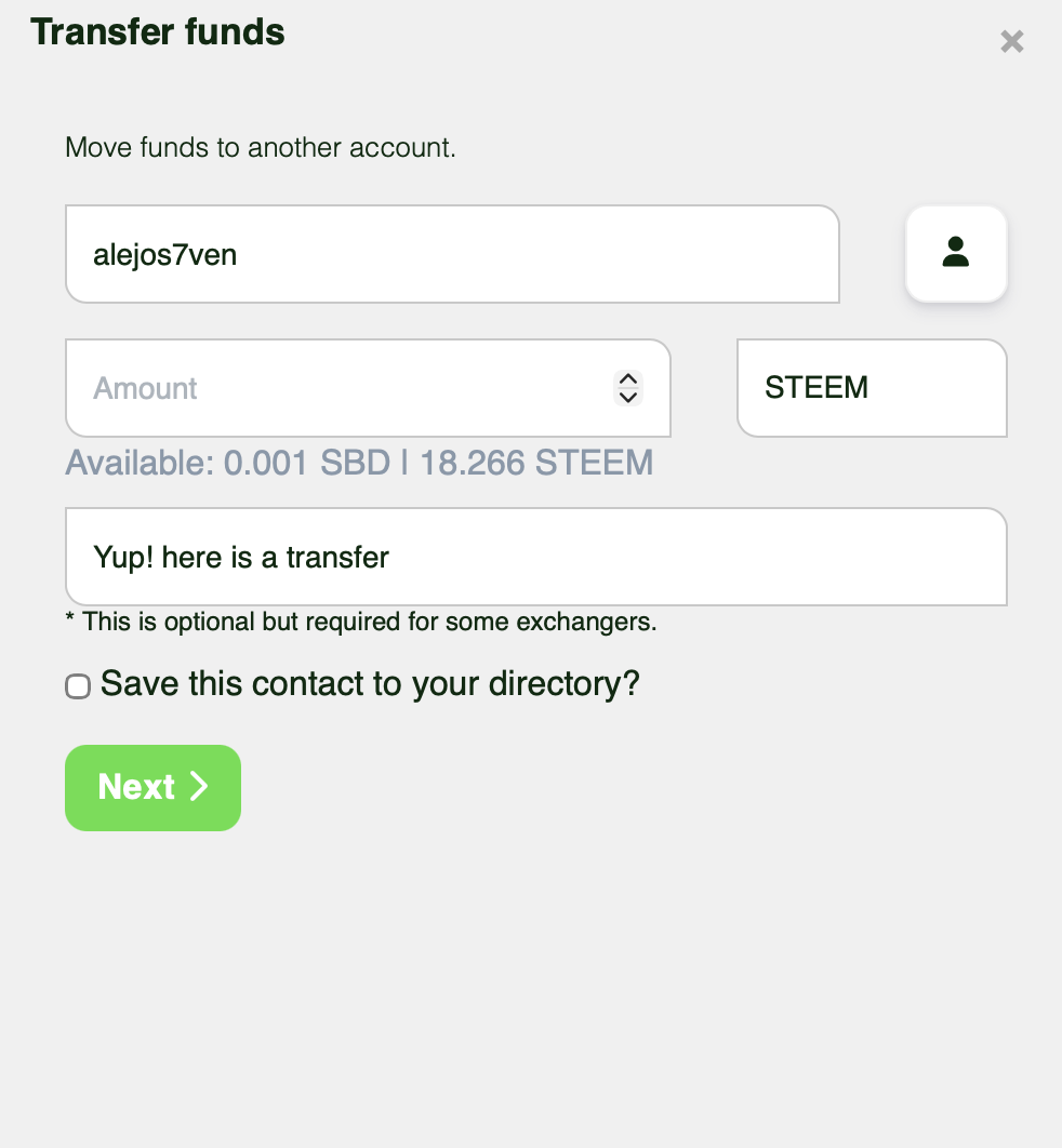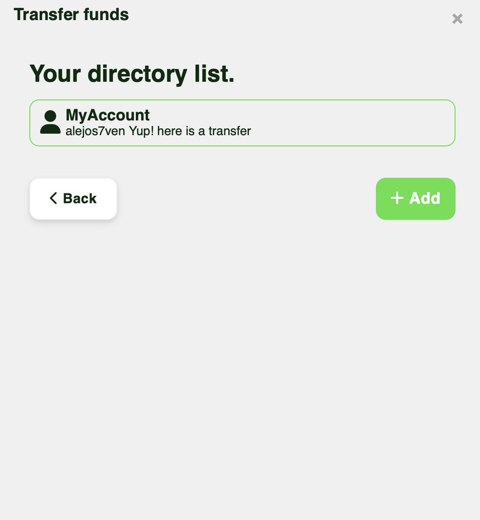 Justo al lado del campo para escribir el recipiente encontraremos el botón de nuestro directorio donde podemos consultar la lista de usuarios a los que transferimos recurrentemente que hemos guardado.