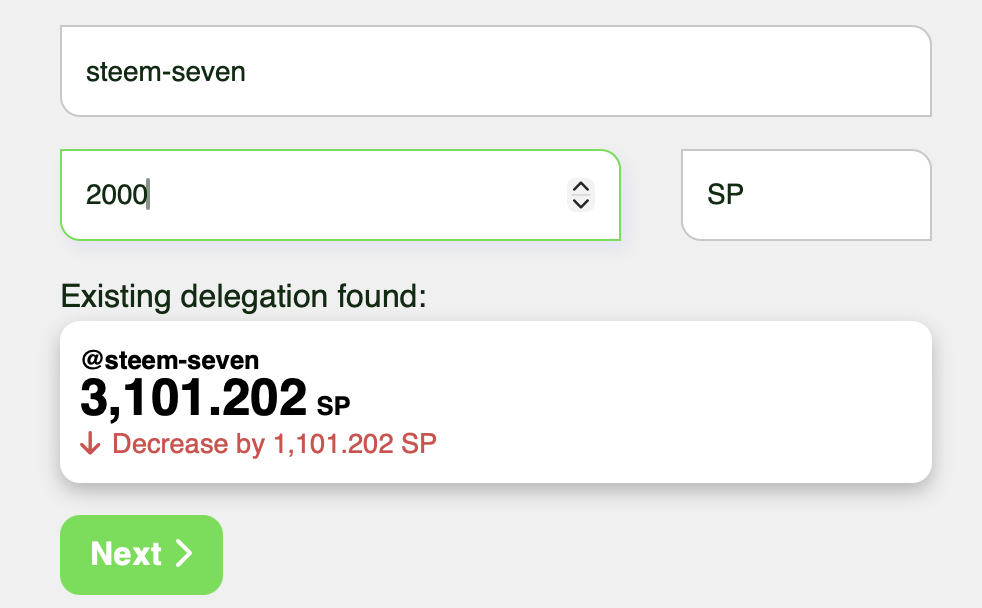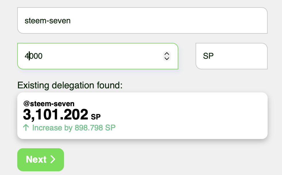 De la misma forma en el siguiente ejemplo establecimos la cantidad de 4000 que sumará aproximadamente 800 SP a la delegación previa, cómo podemos ver en la imagen esto facilita ver lo que vas a hacer exactamente con tu delegación.
