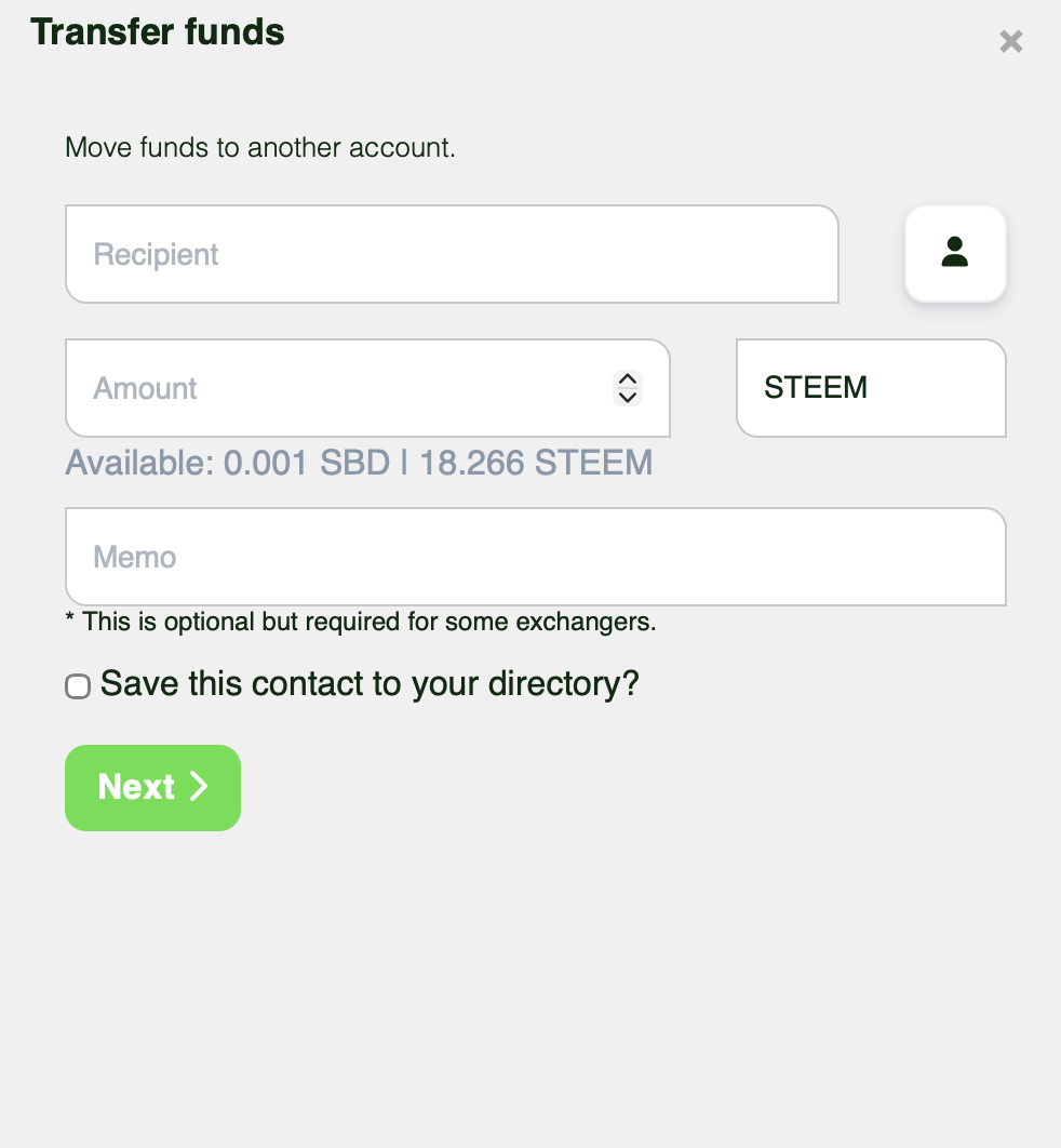 Comenzando a navegar por la Wallet nos encontramos con el formulario para realizar una transferencia, el mismo contiene todos los detalles básicos, un recipiente, la cantidad, la moneda a enviar, y el Memo. Adicionalmente hemos agregado un sistema de directorio que permitirá a los usuarios recordar configuraciones exactas de transferencias.