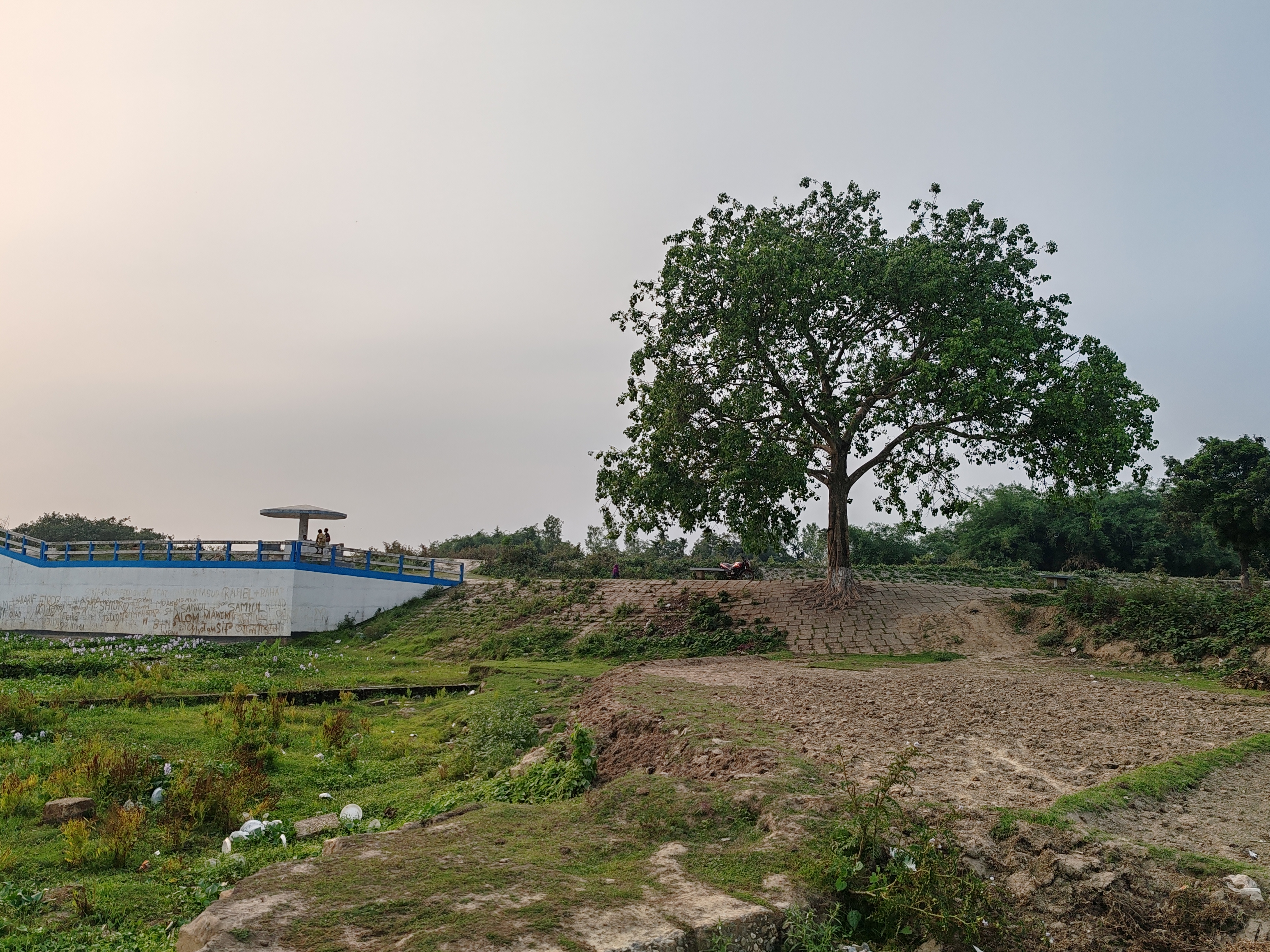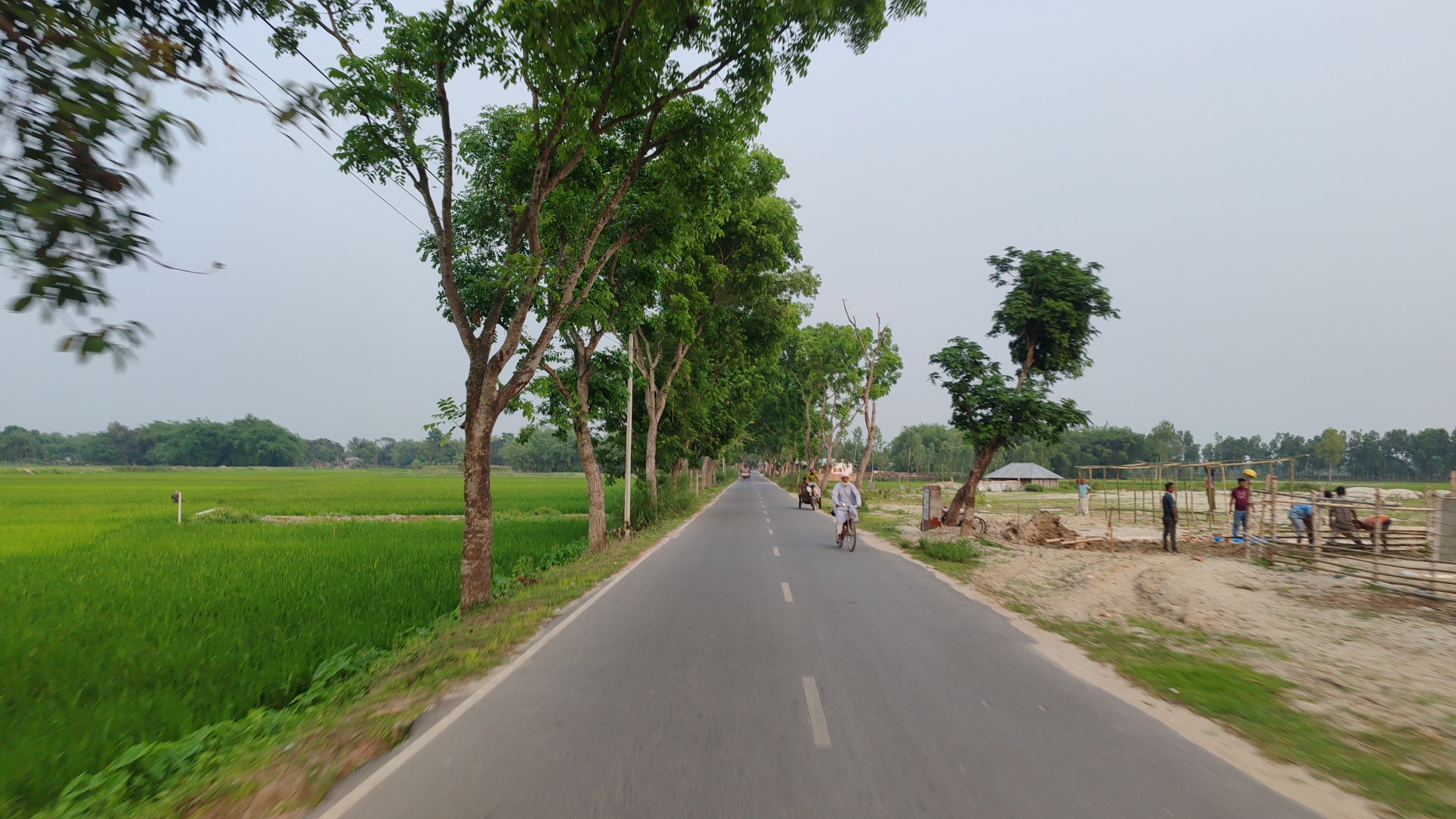 Ayer, surgió un pequeño plan con un amigo. Decidimos dar un paseo en bicicleta hasta un pueblo en Nilphamari. Hacía tiempo que quería pasar un tiempo en la naturaleza, lejos del bullicio de la ciudad. Mientras pedaleaba por el camino del pueblo, sentí que el tiempo se detenía. Había árboles verdes por todas partes, un cielo abierto y nubes espesas entre ellos. La luz del sol se había atenuado un poco, creando una atmósfera fresca.