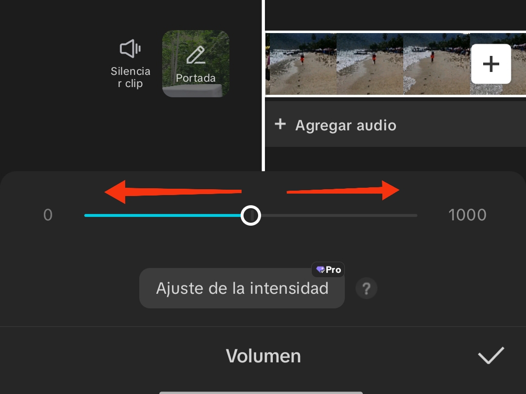 Allí se abre una barra de 0 a 1000, y puedes mover la barra para ajustar el volumen que deseas.