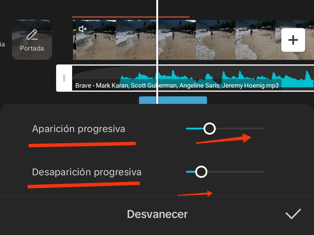 Al hacer, podemos ir moviendo las barras, y así la música no inicia ni finaliza de manera abrupta.