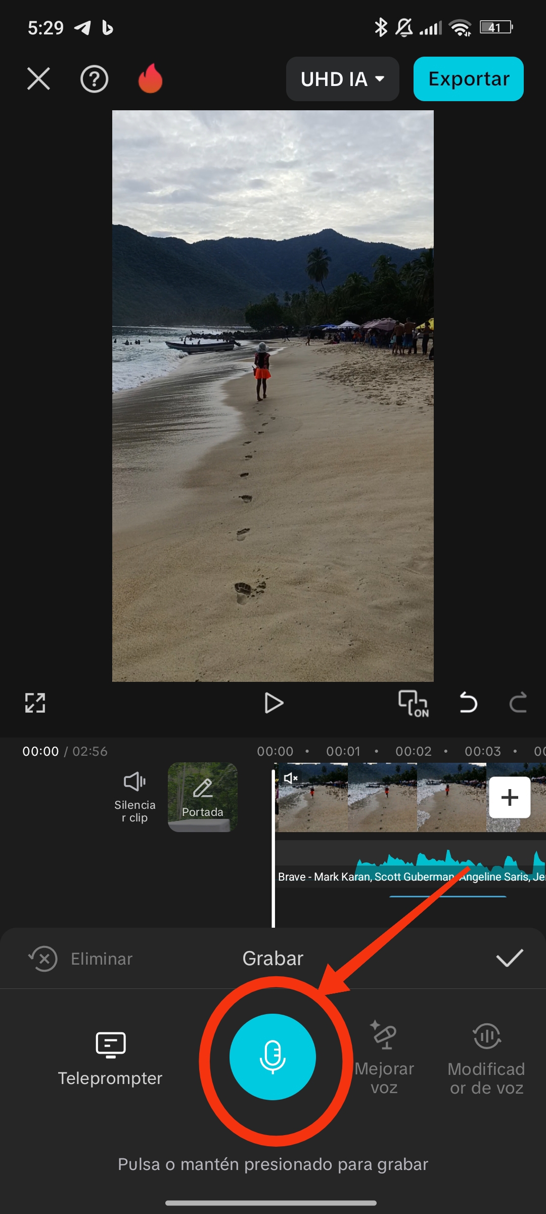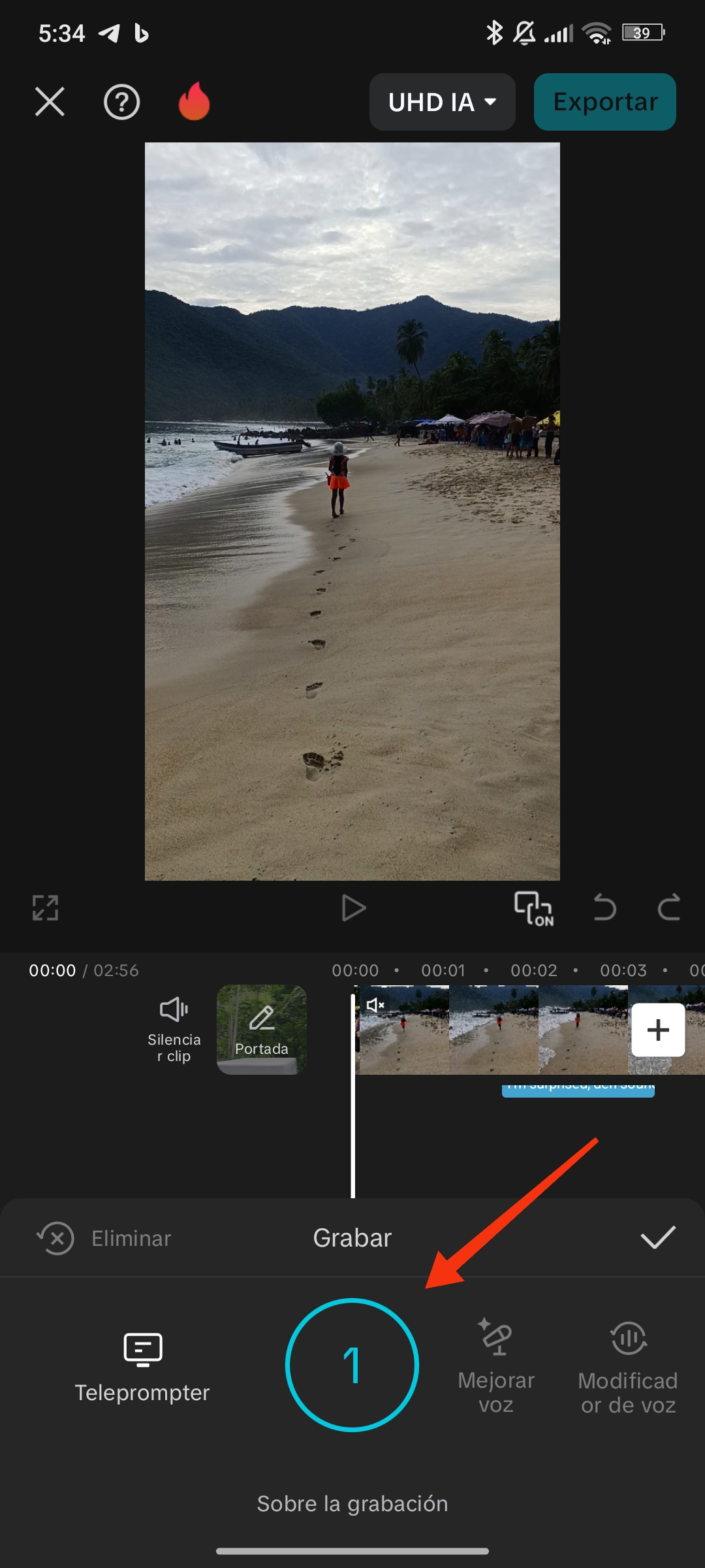 Al apretar el icono de grabar, se nos abre una pequeña ventanita con el botón del icono de micrófono. Al apretar allí, comienza un conteo regresivo para comenzar a hablar. Al salir el micrófono puede ir hablando. Una vez hayas terminado de grabar, vuelve a apretar al icono del micrófono para parar. puedes darle eliminar o al símbolo de ✅ para guardar la grabación.