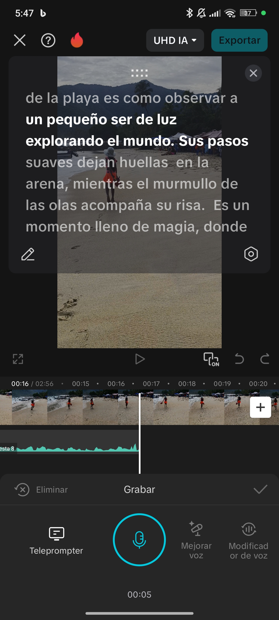 Luego de esto, comenzamos a grabar y el teleprompter nos va indicando el ritmo de lectura.