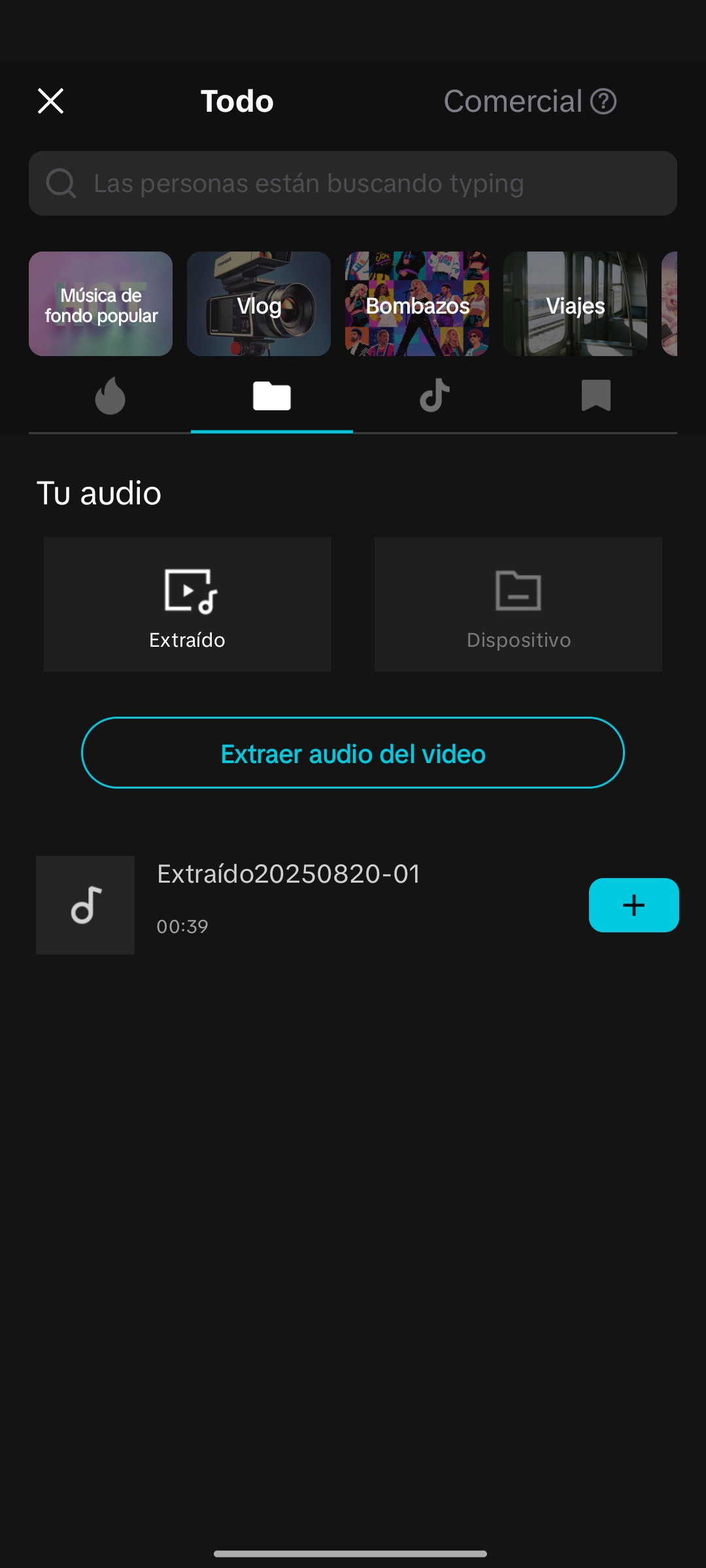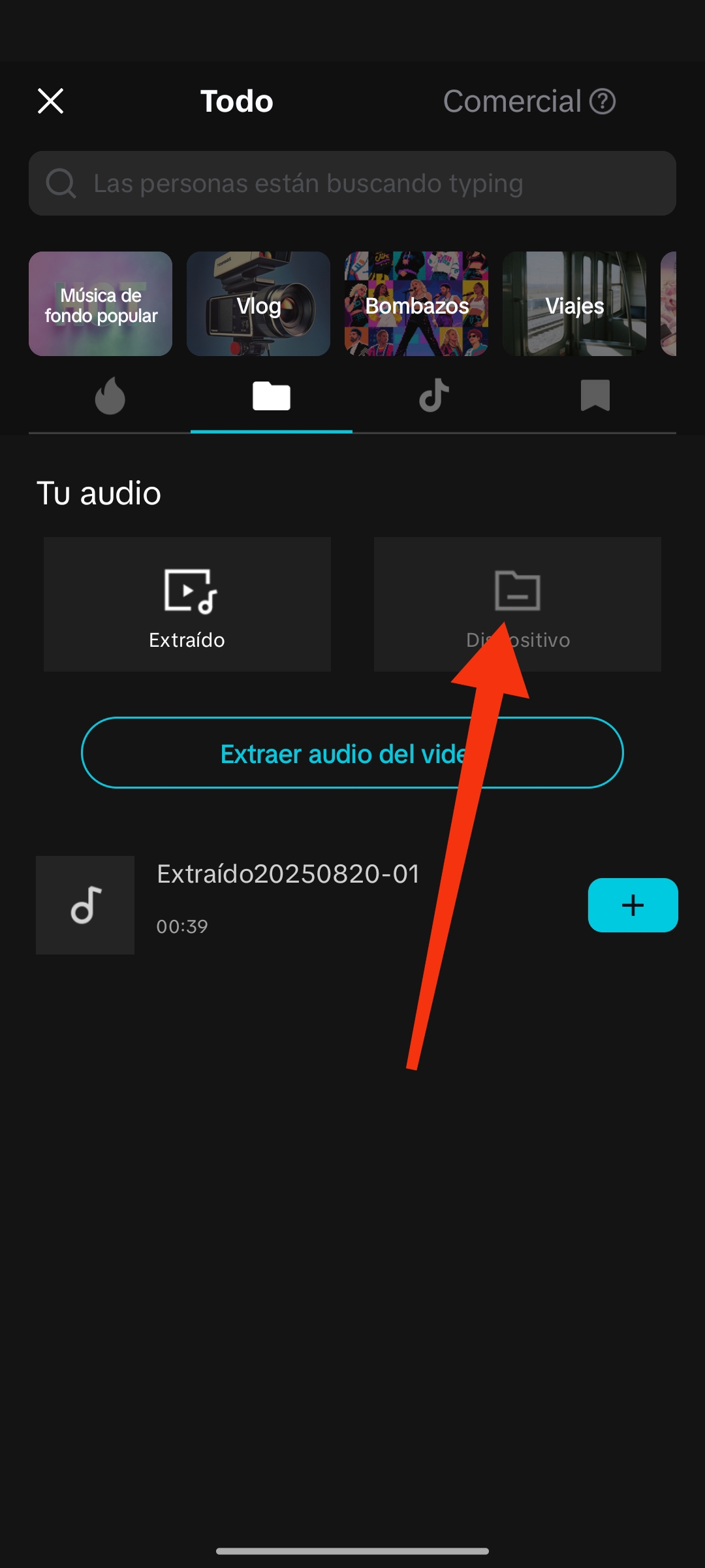 En tu audio, nuevamente aparece la opción de extraer audio de un vídeo o de buscar nuestro audio en el dispositivo.