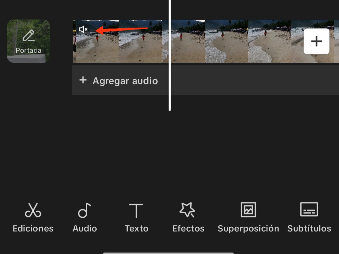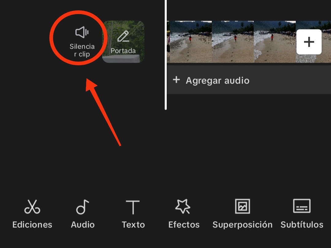 Si no necesitas ninguno de los audios de los vídeos importados y los quieres silenciar todos, solo debes apretar el botón de silenciar clips que se encuentra en la línea del tiempo.