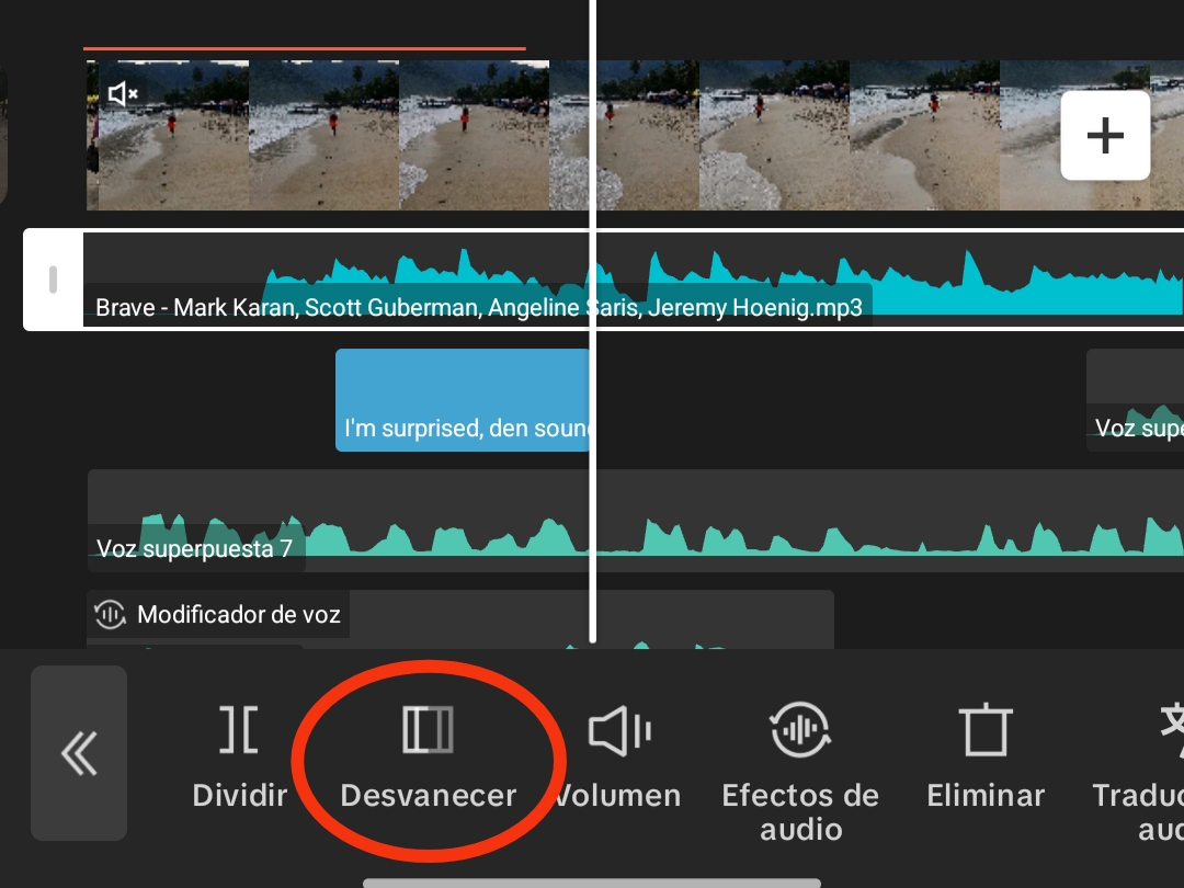 Pero una herramienta muy buena para la música, sobre todo después de cortar, es la de desvanecer.Con esta herramienta podemos hacer que una música o audio inicie de manera progresiva y de la misma forma finalice.