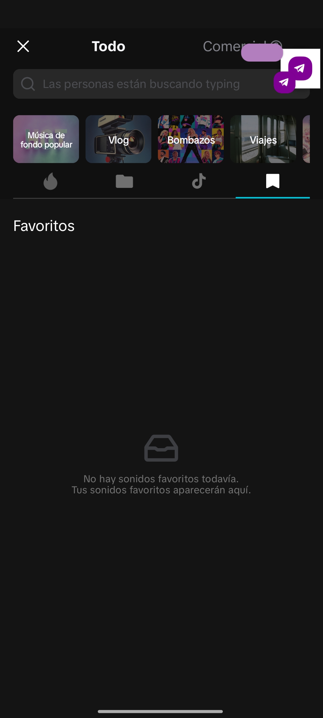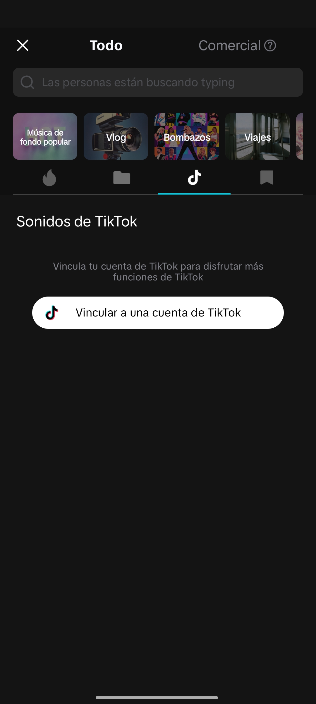 En Sonidos de TikTok, nos salen todas las músicas y audios que hemos guardado en TikTok; esto solo se muestra si tenemos las cuentas vinculadas. Y En Favoritos, nos muestra los audios que hemos marcado como favoritos.