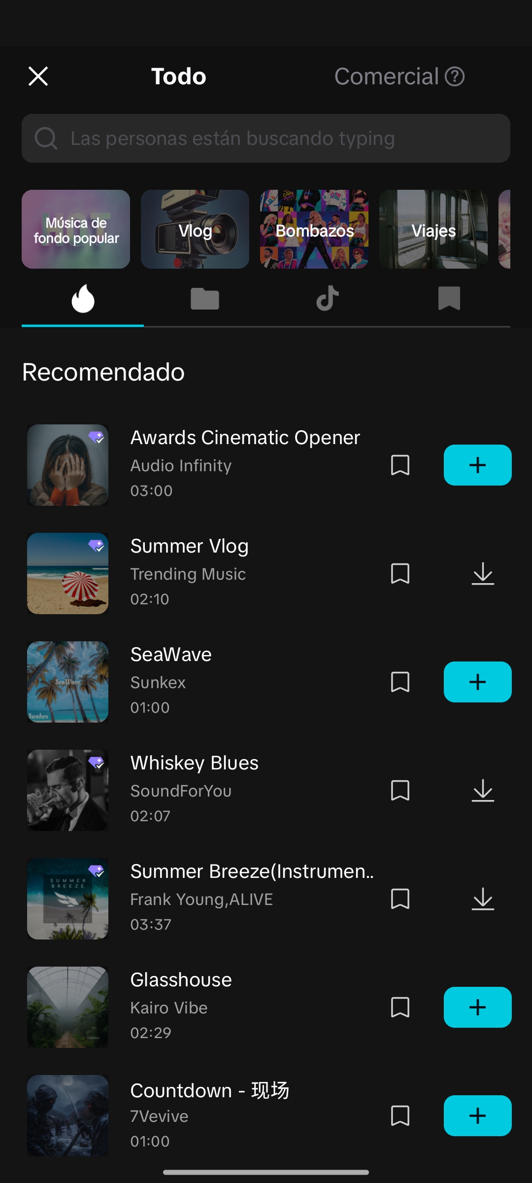 Toda la música que aparece en esta biblioteca de CapCut solo tiene licencia no comercial para TikTok.