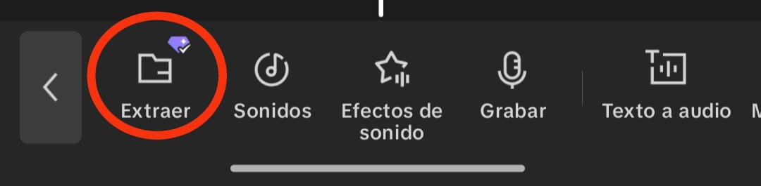 El primer icono que aparece es el de extraer. Esta acción permite extraer el audio de un vídeo, pero solo tienes acceso a él si tienes CapCut Pro.