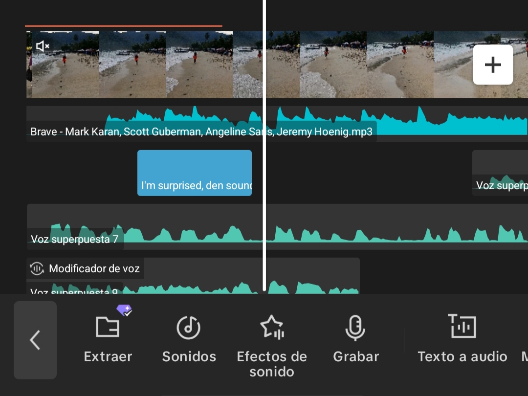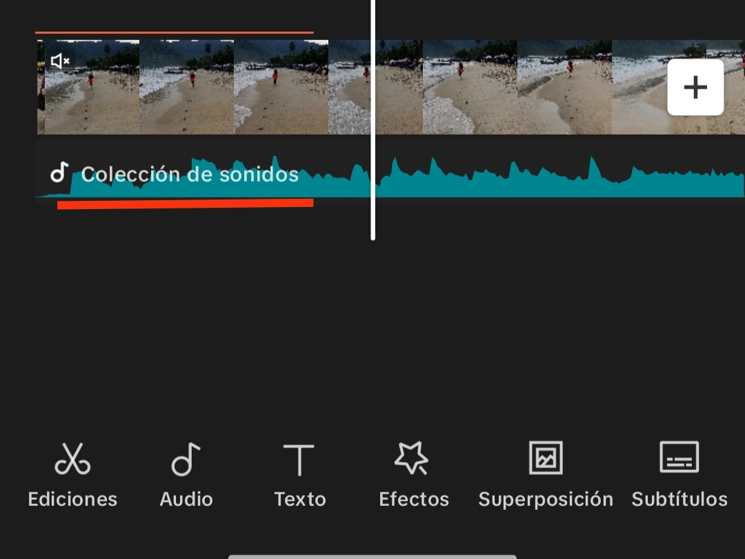 En nuestra línea de tiempo, cuando no estamos seleccionando nada y ya hemos agregado sonido, se agrupan todos en uno y pasa a llamarse colección de sonidos.