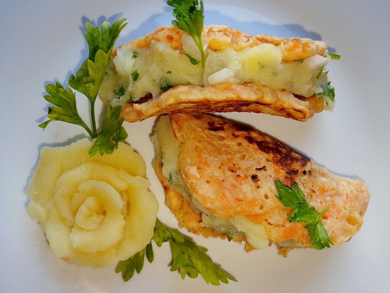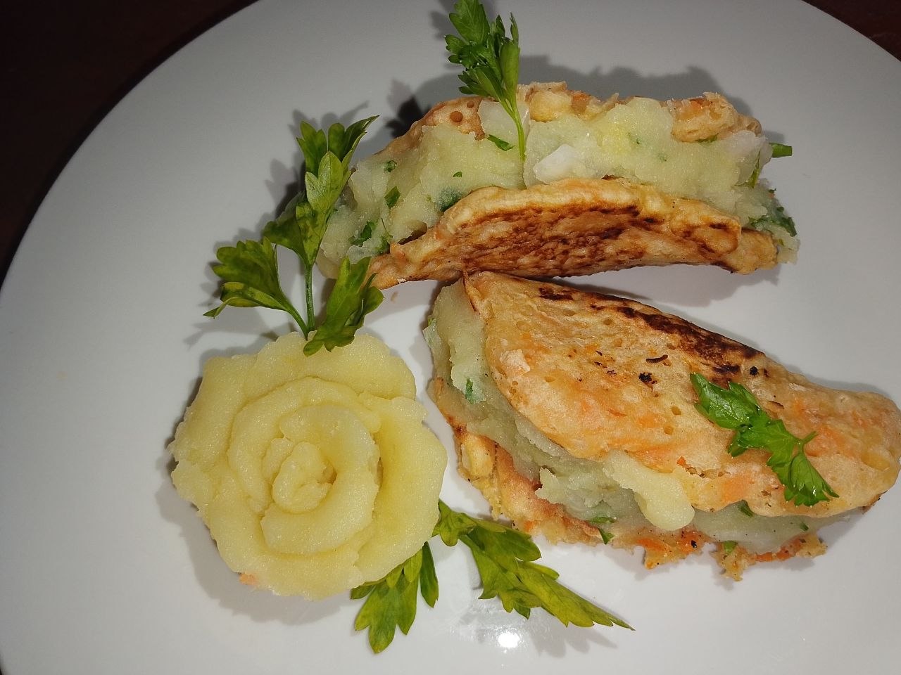 ¡Hola a todos! ¡Vengo a participar en la segunda semana! ¡He decidido preparar algo muy rico y, por supuesto, muy saludable! ¡Unos panqueques de zanahoria acompañados de un puré de papa condimentado con cebolla blanca y perejil!