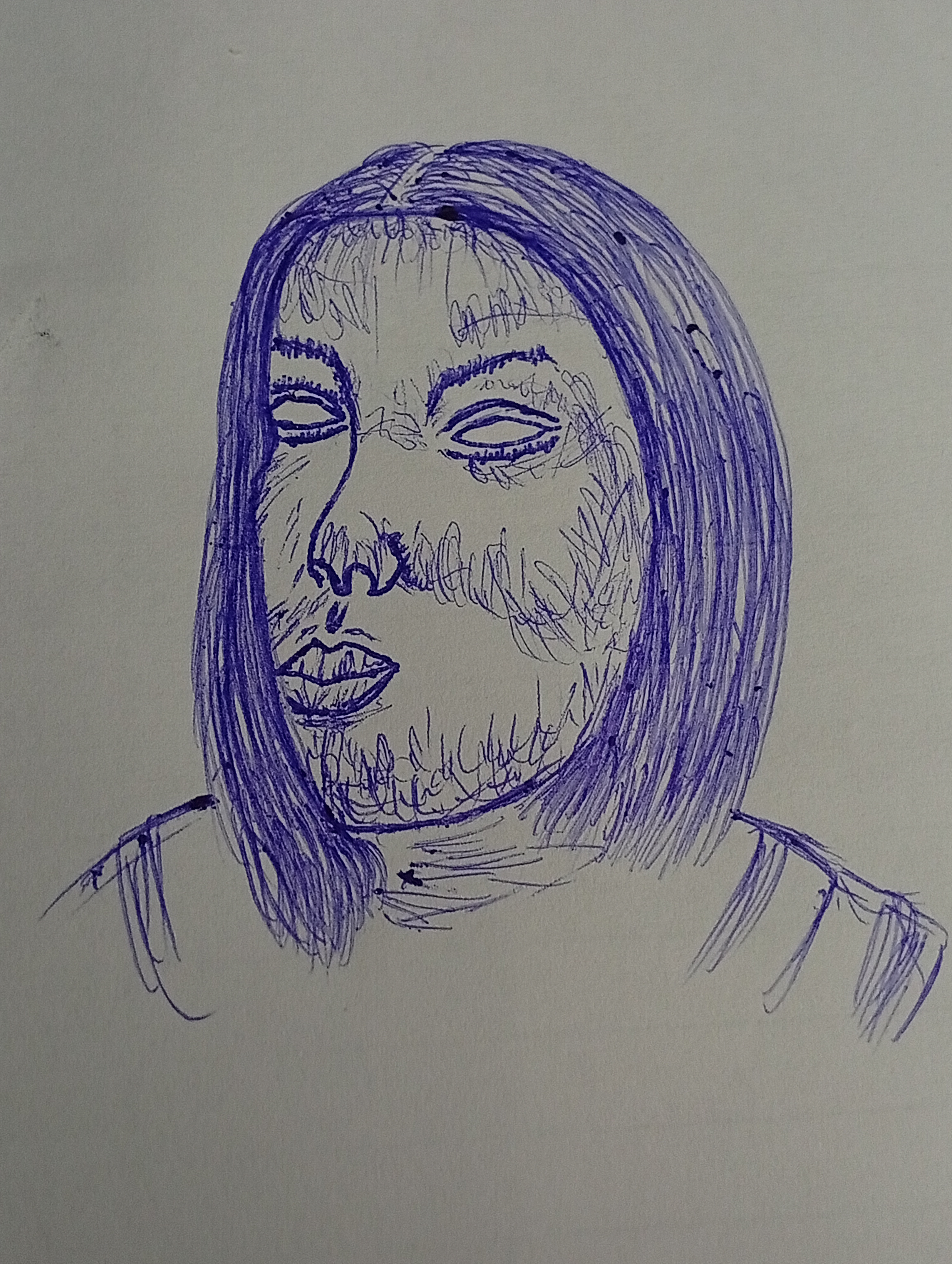 Así que completé este dibujo en particular hoy en cuatro pasos principales usando un bolígrafo y el método de garabateo.