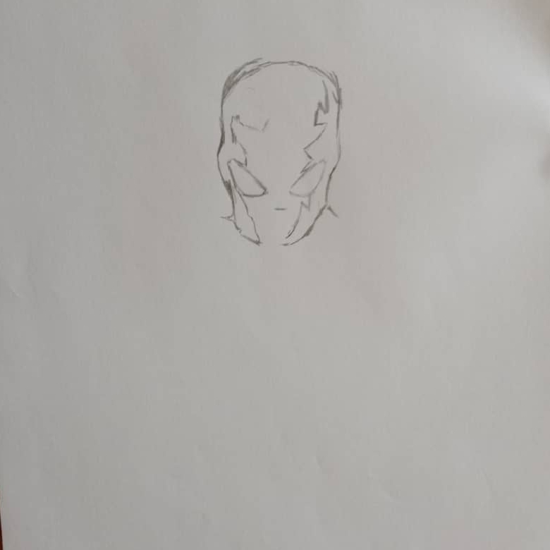 Lo primero que traze fueron las líneas de la cabeza , que es lo más sencillo y que ubica el dibujo en el espacio de la hoja.