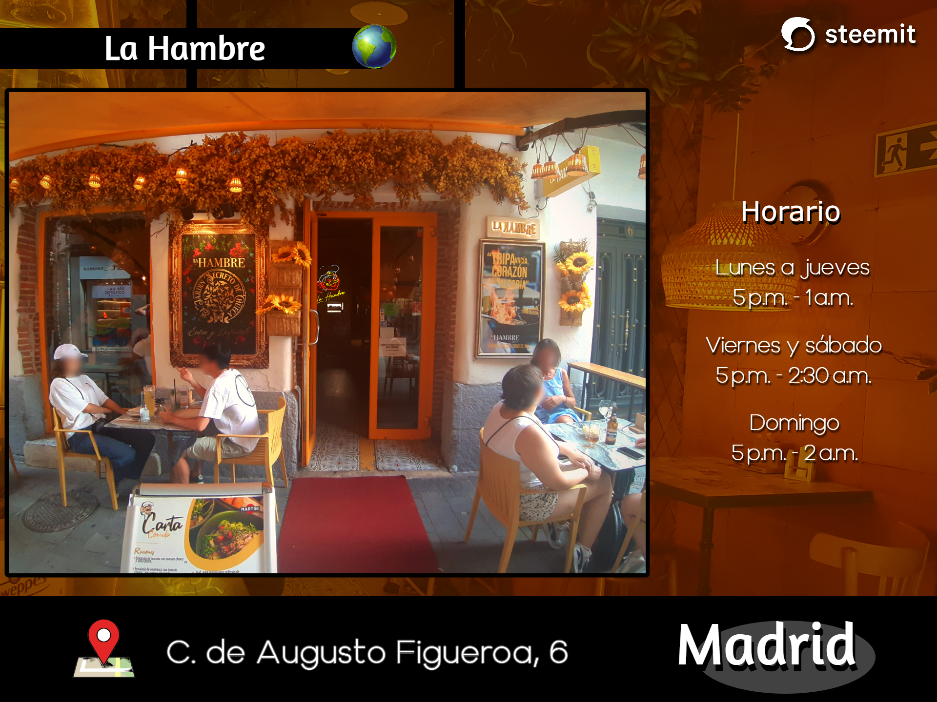 En el centro de Madrid, justo en el barrio de Chueca, me encontré con un restaurante muy interesante, su carta tiene una fusión gastronómica que te va a encantar, y sus espacios con un diseño tropical muy cómodo y elegante, su nombre es La Hambre.