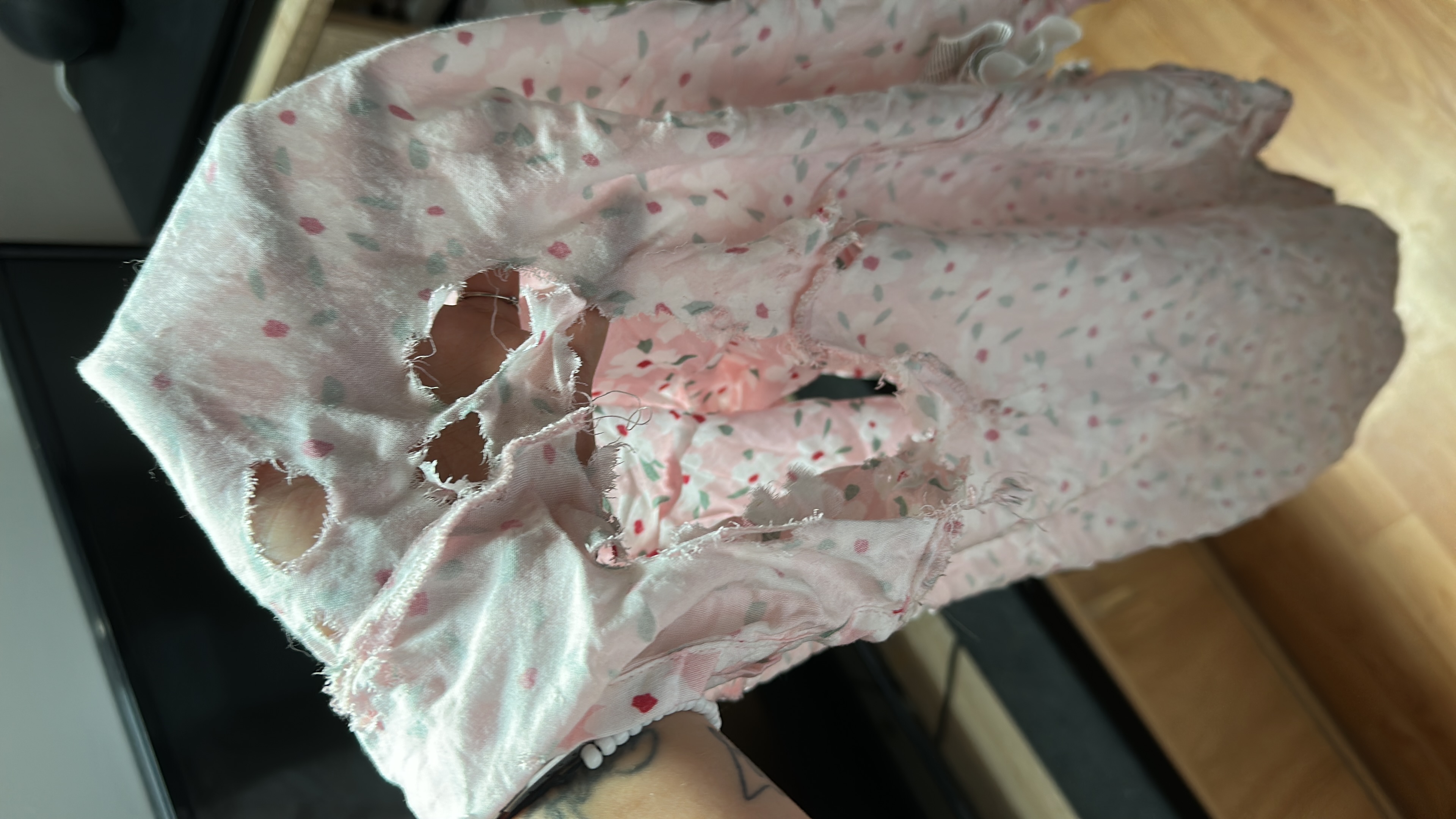 Mi amada perra me rompió la parte de arriba de una pijama, y yo queria medio matarla. Pero entiendo que aún es cachorra, y ni modo. Aunque honestamente es primera vez que me agarra una prenda de ropa, así que no sabemos qué pasó ahí.