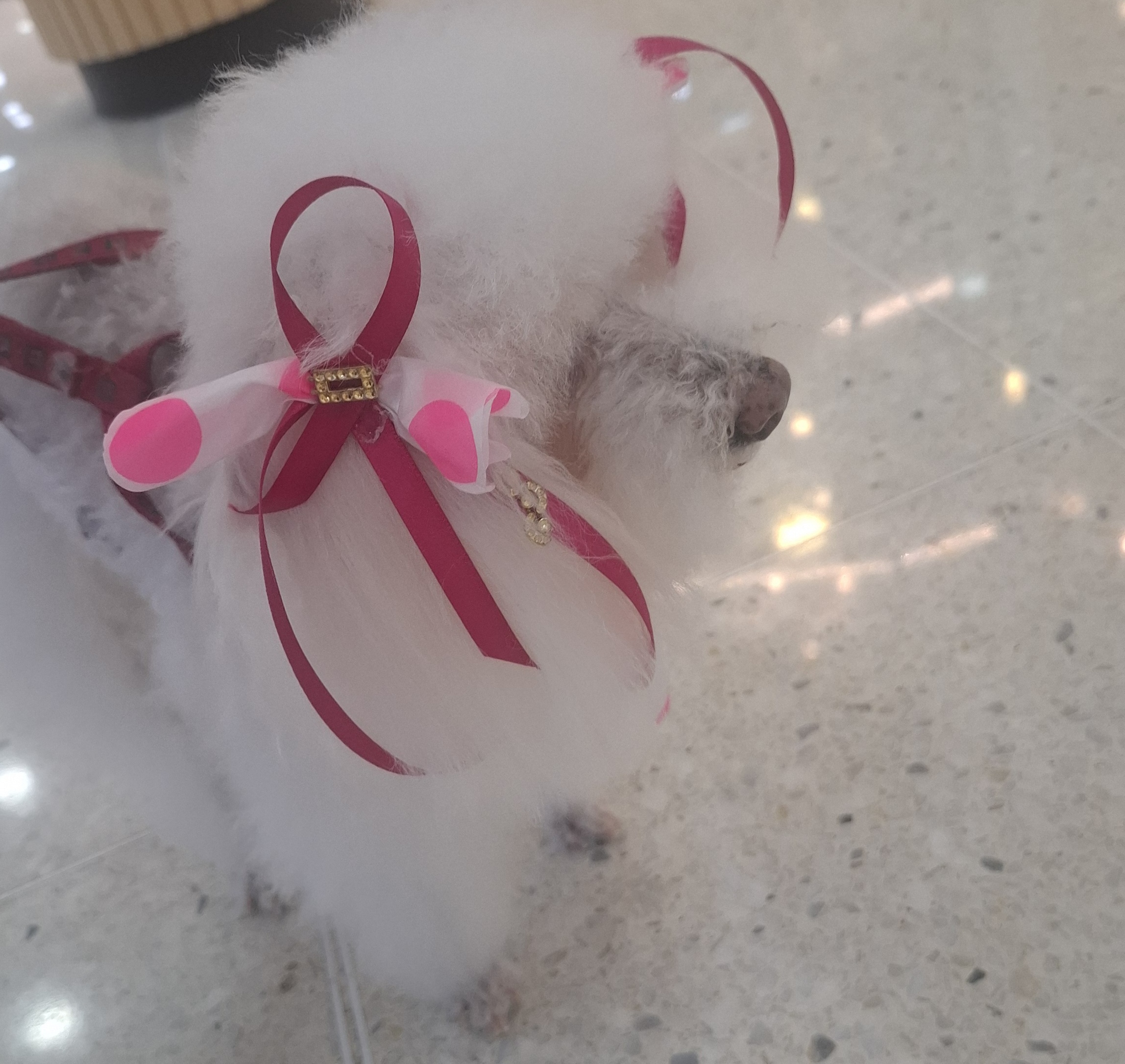 A heidi se le baña mensual y es que ella es blanquita pero le encanta andar comiendo cositas del piso y por eso se ensucia súper rápido y no es que le guste mucho el agua, por eso cada vez que nos vamos acercando a la tienda va temblando pero es algo bueno para ella porque siempre la dejan hermosa sobre todo porque el estilista que siempre le toca es bastante detallista y la deja muy coqueta.