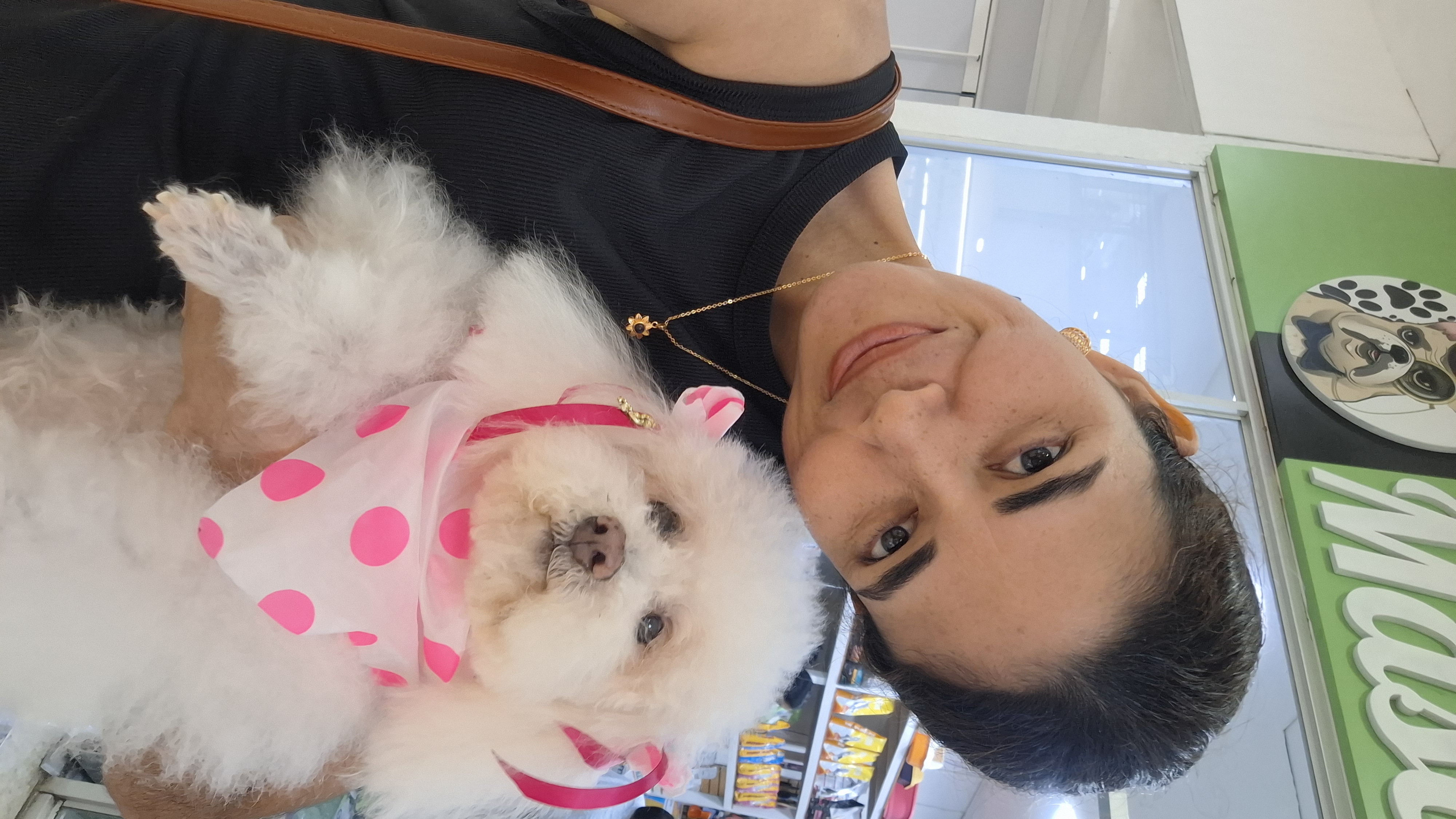 Mientras dejamos a heidi en la tienda de animales decidimos ir a hacer algunas compras para la casa, necesitabamos algunos víveres y carne para la semana también pasamos a comprar algunos productos de aseo de la casa como cloro y desinfectante para el patio y ya pues al rato nos mandan un mensaje que estaba lista heidi así que la fuimos a buscar en la foto pueden ver lo linda y pomposa que quedó.
