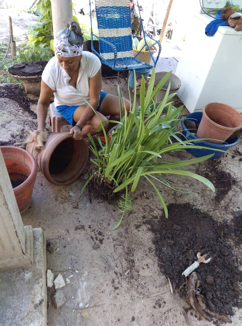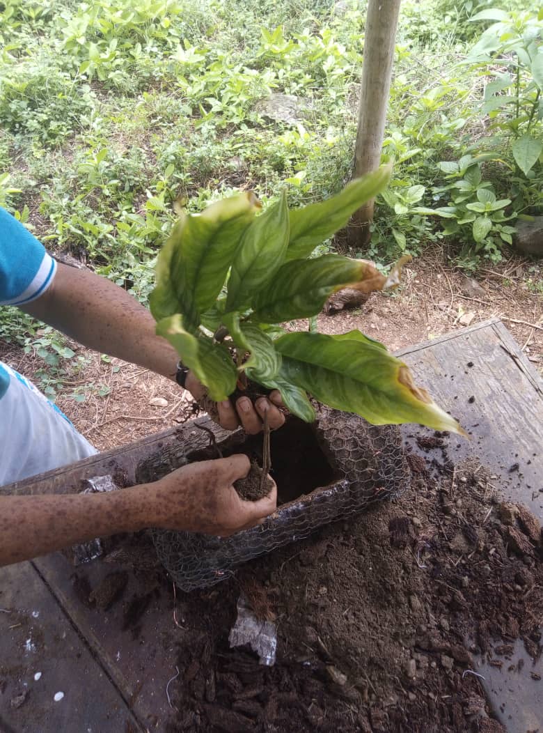Terminado de cubrir el macetero con la malla, mi esposa me trajo la mata, le agregue abono al hueco, la sembré y ella quedó de lo más feliz con la mata en su nuevo macetero, y yo satisfecho con el trabajo y con la alegría de que le ocacione a mi esposa.