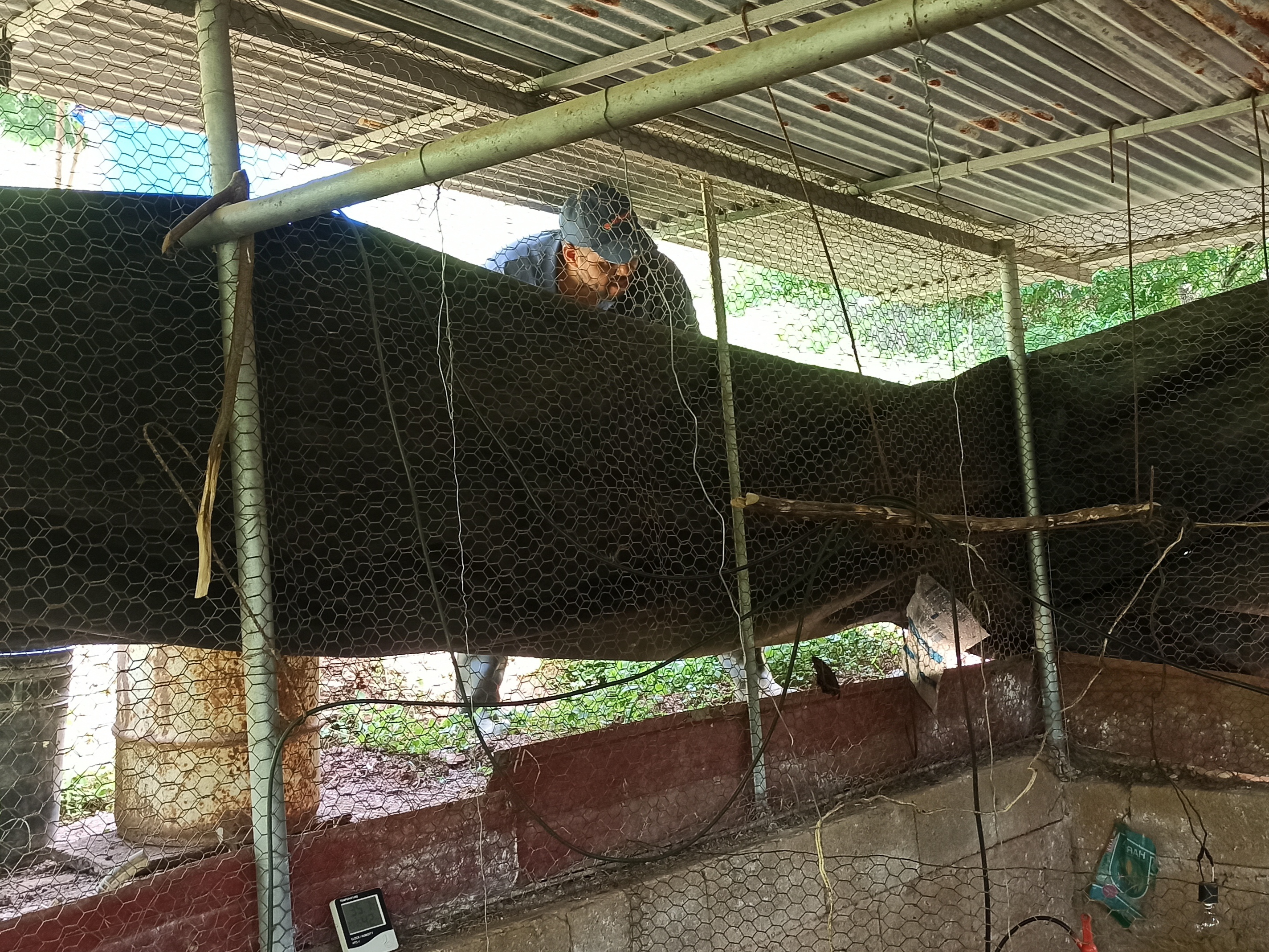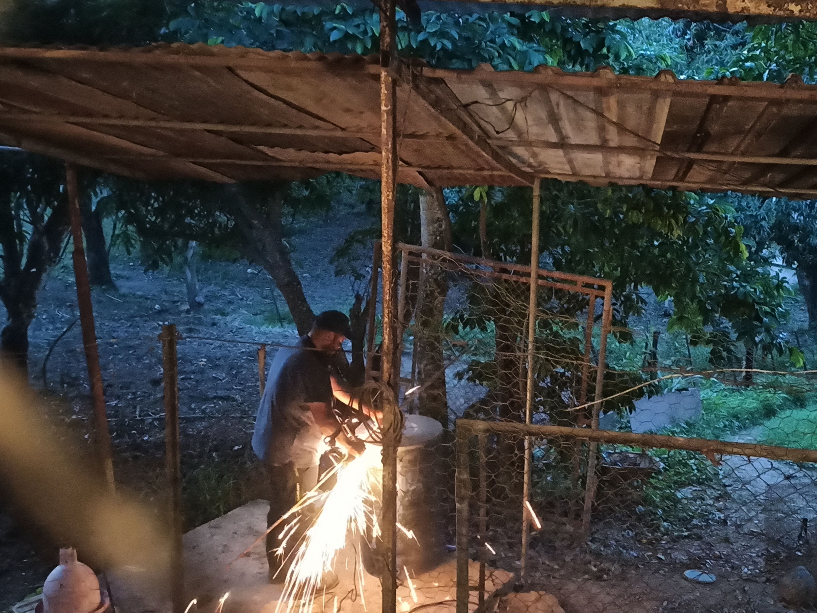 Subí al galpón y ayude a mi esposa a poner las cortinas porque cuando viene la noche hay que tapar a los pollos más pequeños para que no sufran de frío porque el aguantar frío los retrasa en su crecimiento, después de terminar con esta parte tuve que picar algunas cabillas para seguir arreglando la otra parte del galpón porque a medida que vamos vendiendo pollo queremos tener más producción y para eso hay que hacer algunos arreglos y los estamos haciendo con lo que tenemos a la mano y por allá tirado en el patio jajjajaj lo cierto es que aquí sí se me hizo un poco oscuro pero logramos adelantar bastante.