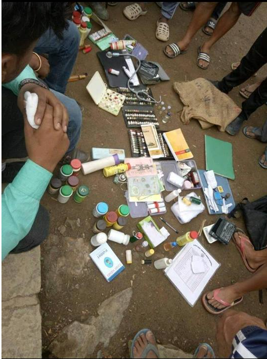 According to the message circulating in the social media, 3 suspected conmen who came from mainland India to the indigenous village have been caught with many things like surgical instruments and illegal drugs which when consumed can make the victim unconscious. The suspects have forced a local girl to undergo a medical check up. Upon sensing the danger, the girl cried for help and the village folk immediately arrived on the scene to rescue her. The village folk then tried the medicine of the suspected conmen on two of the three suspects and both fell unconscious.