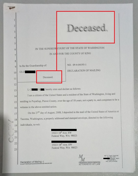 I really don't know if the documents were genuine. According to Atty. JWR, the lawyer of the guardians, there was an error in those "court papers." Via an email sent February 14, 2010, she stated that my mother isn't dead and the guardians were appointed last September 15, 2009.