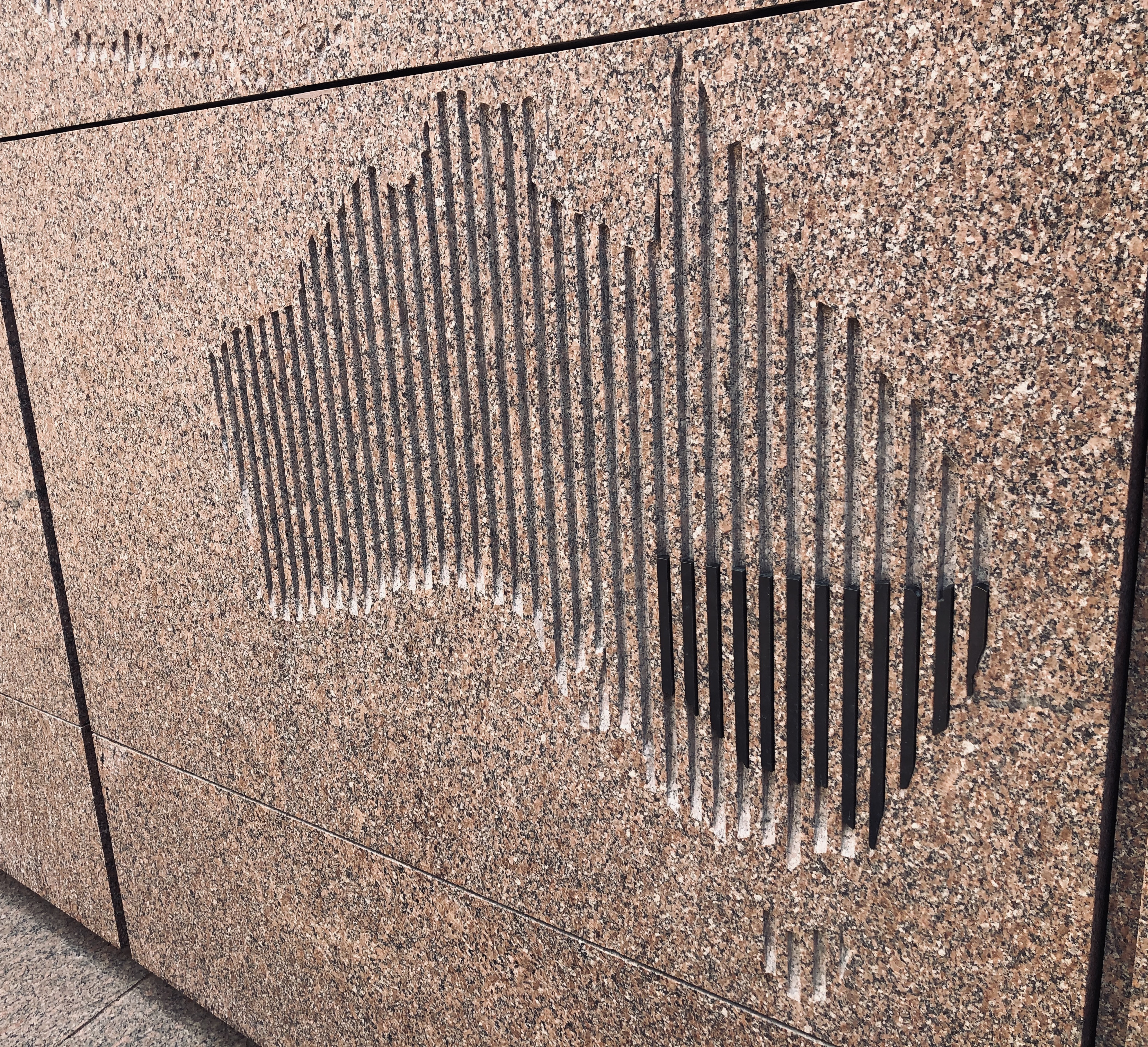 I took this photo at the Anzac War Memorial in Sydney. It is the Australian continent carved into stone. The state NSW is highlighted with steel pins. I just loved the idea.