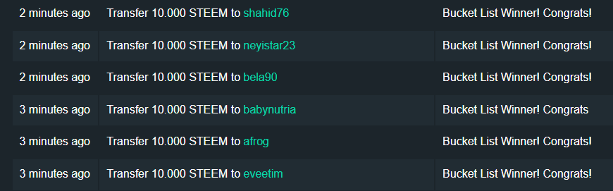 Below you will find a screenshot with the prizes being sent to the winners: