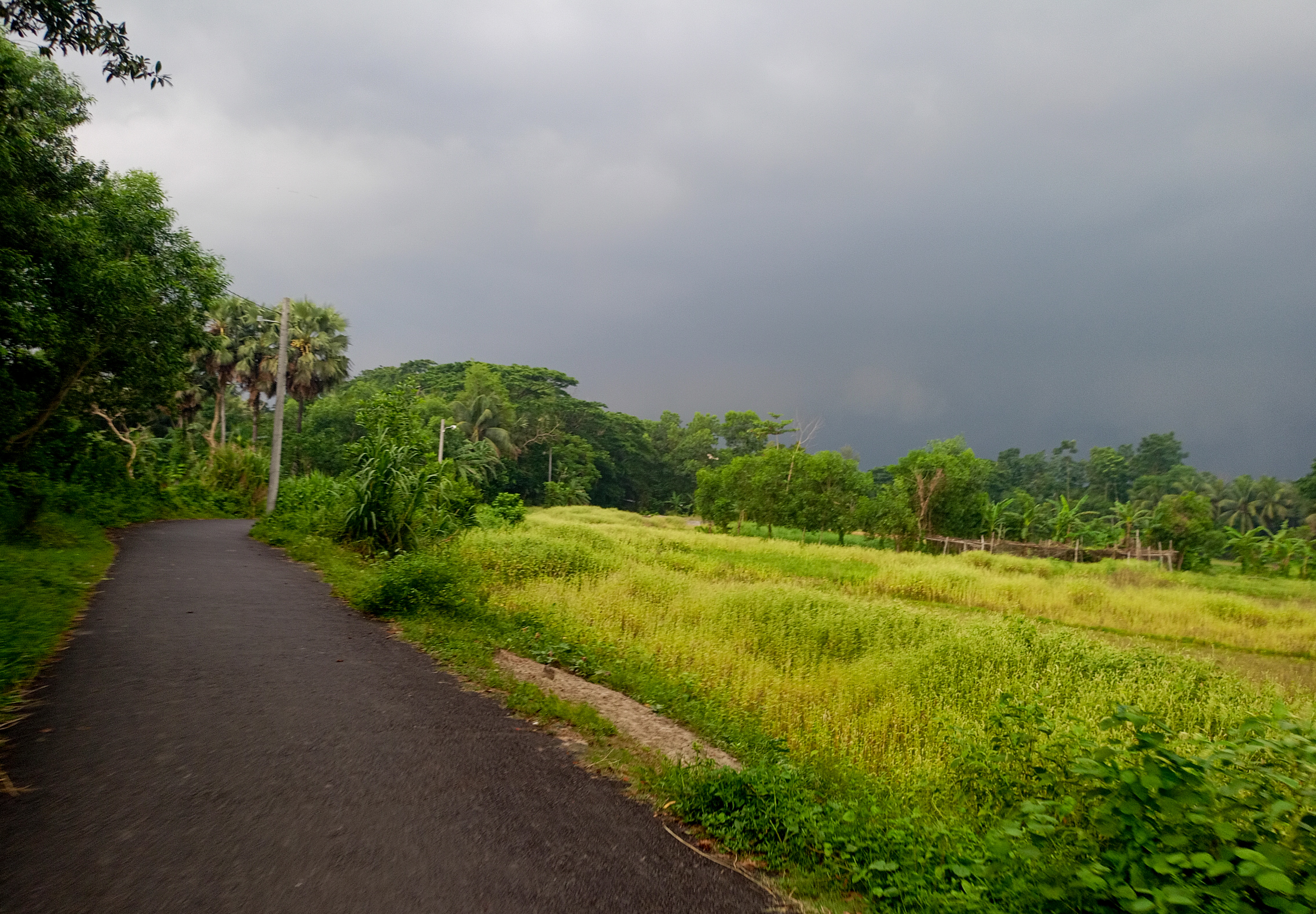 বর্ননা:এই ছবিতে প্রকৃতির দুটো রূপ একসাথে ফুটে উঠেছে। একদিকে ঘন মেঘে মোড়ানো একটু ভয়ানক কিন্তু রোমাঞ্চকর আকাশ অন্যদিকে নিচে সবুজে ভরা শান্তিপূর্ণ গ্রাম্য পরিবেশ। ছবিটা বর্ষার আগমনী বার্তা নিয়ে এসেছে।