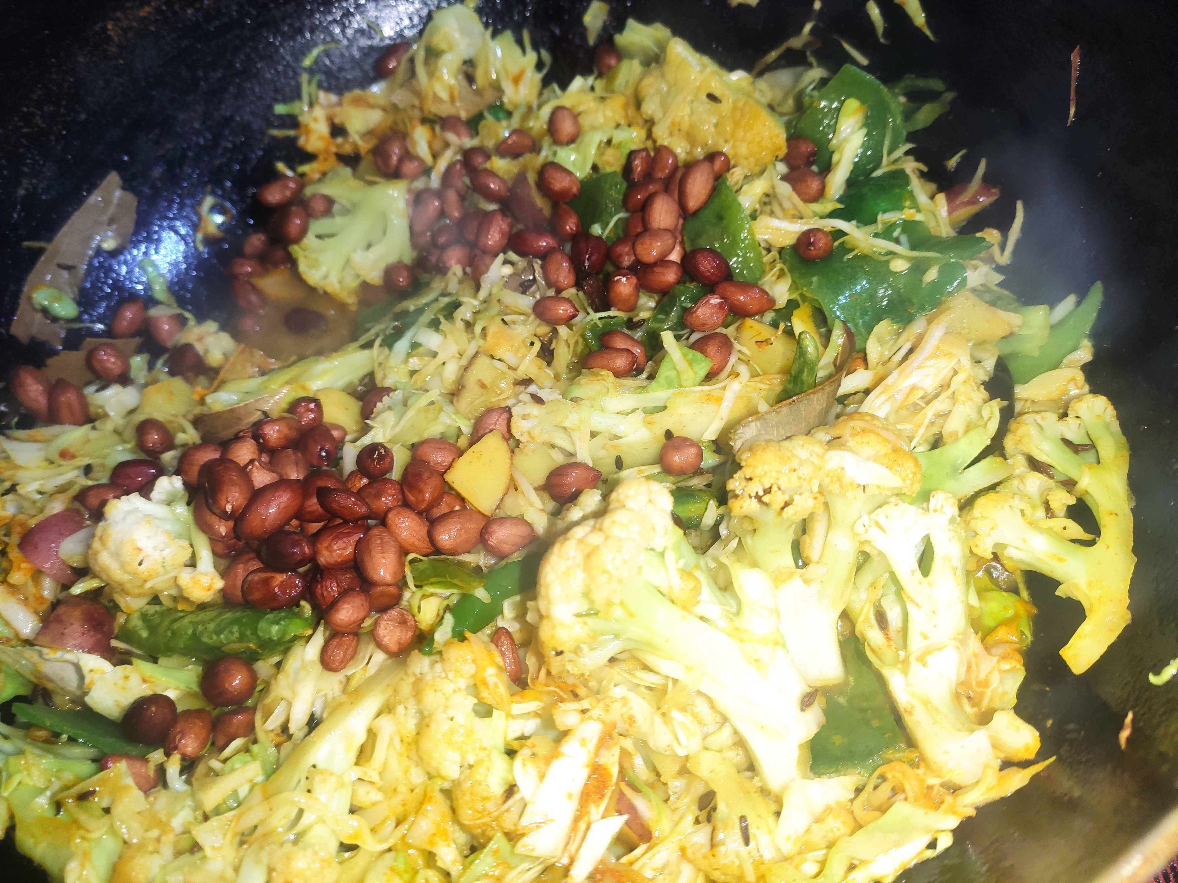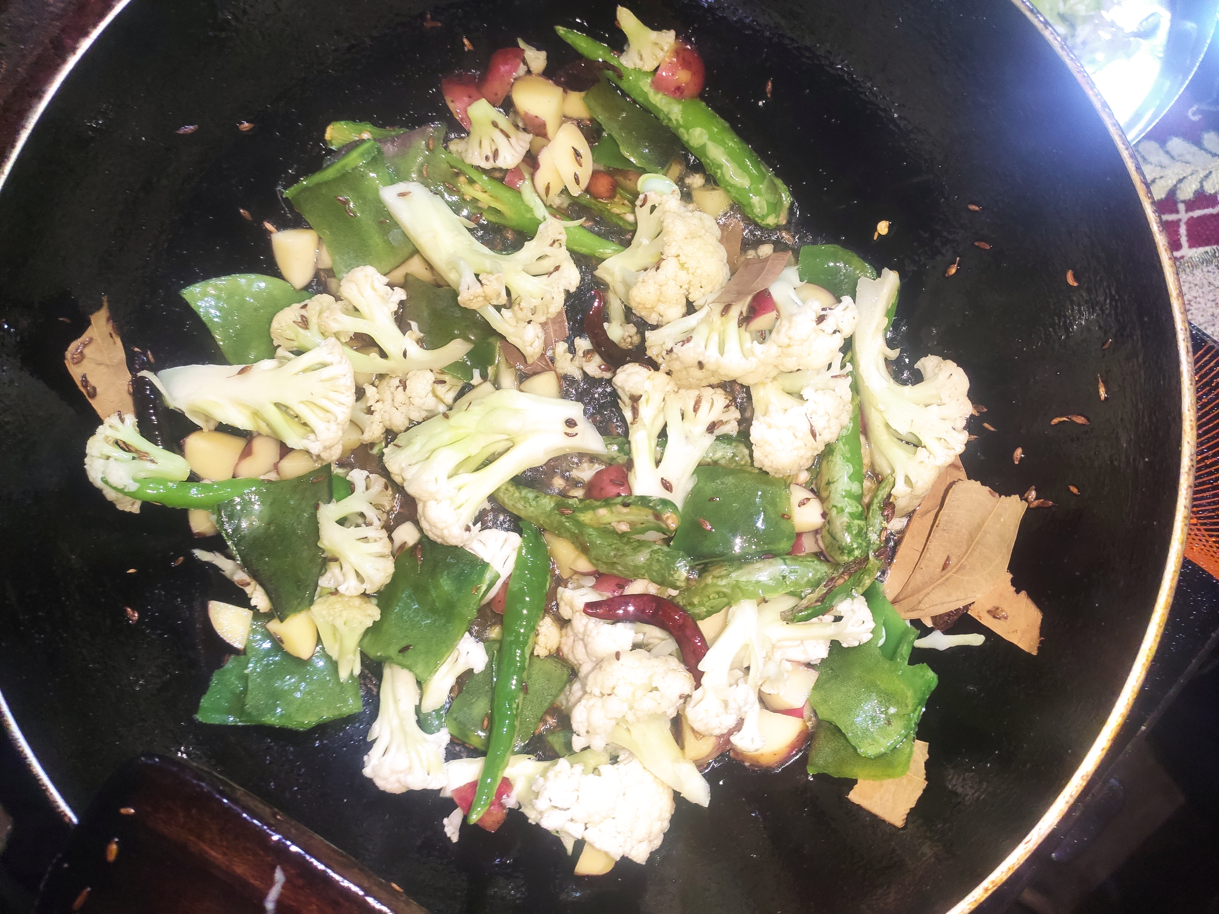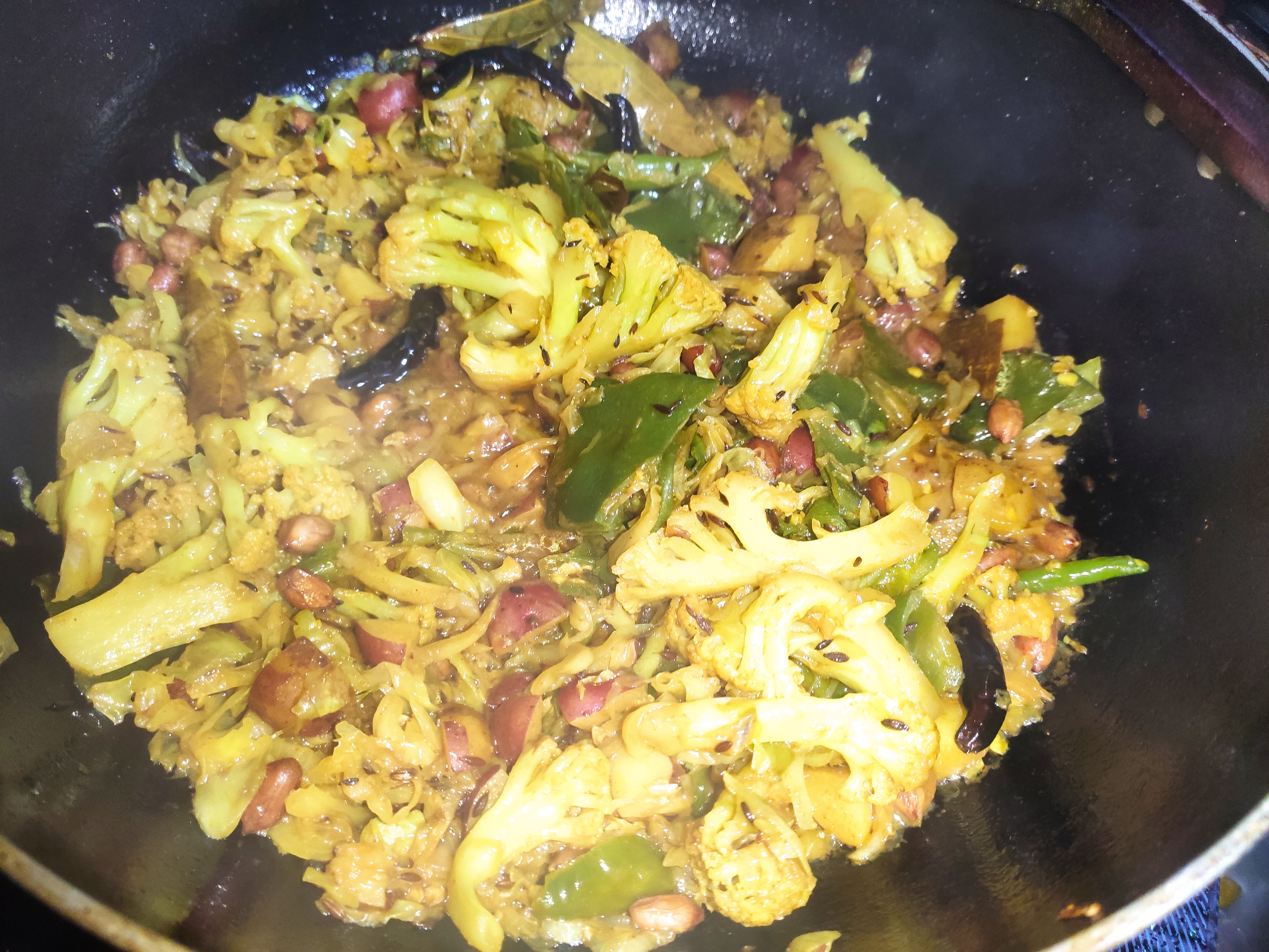 ২: এবার ফুলকপি,আলু দিয়ে দিতে হবে ও ভাজতে হবে।