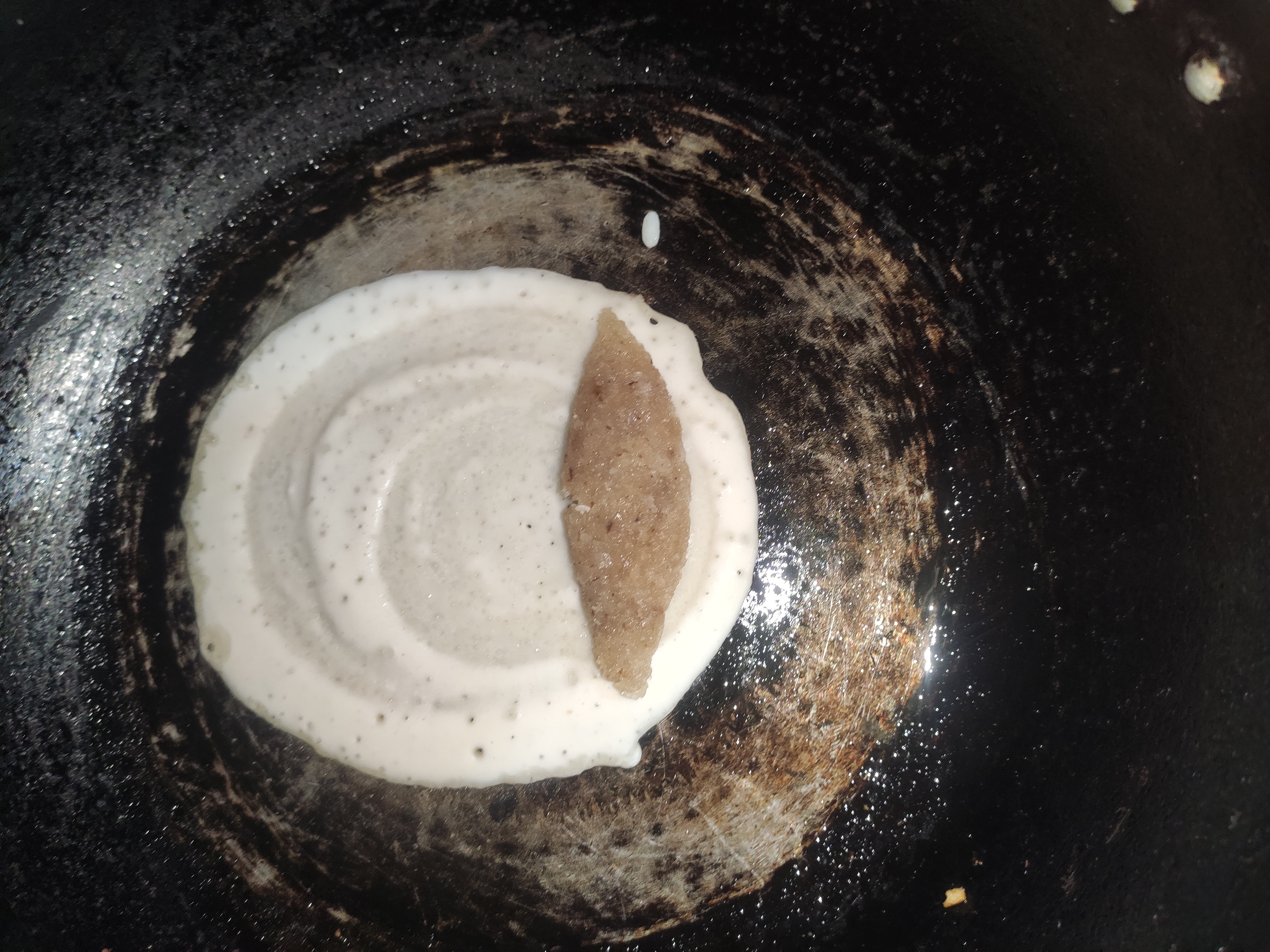 ৬: এবার কড়াই গরম করে হালকা তেল দিয়ে গোল রুটির মতো করে নিতে হবে ও নারিকেলের মুইঠা গুলো দিয়ে দিতে হবে ও ভাজ করতে হবে।