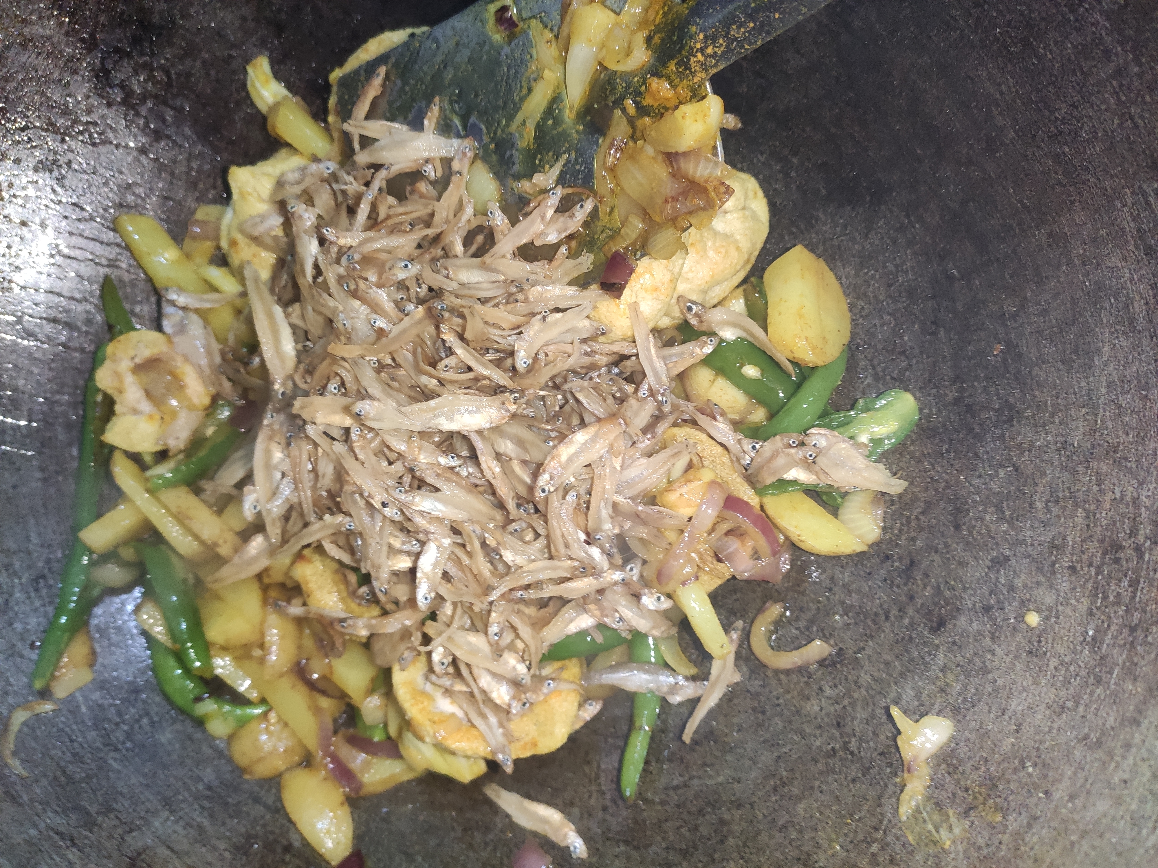৪: এবারে বড়ি ও শুটকি মাছ গুলো দিয়ে দিতে ও ও ভালো করে ভাজতে হবে।