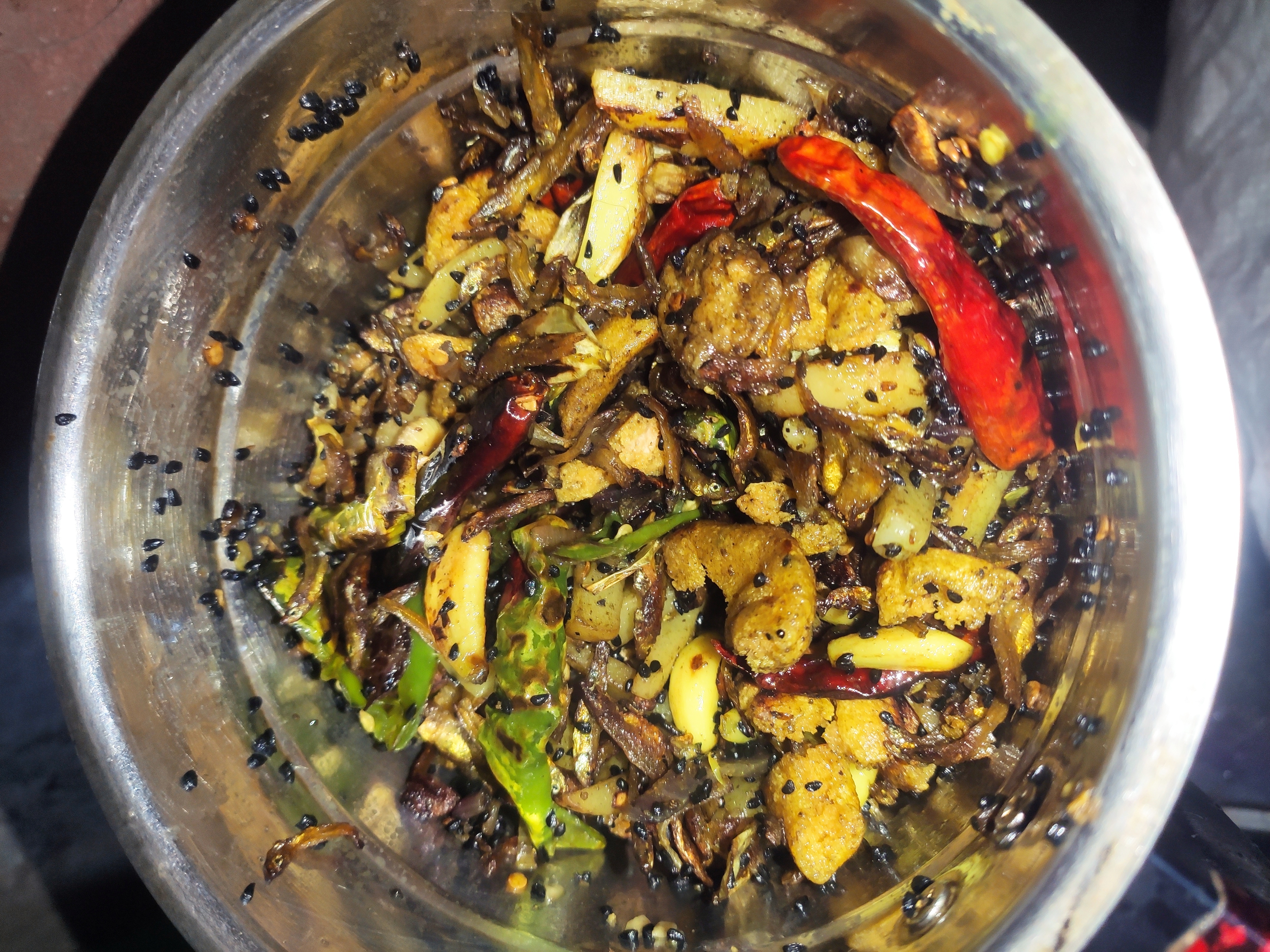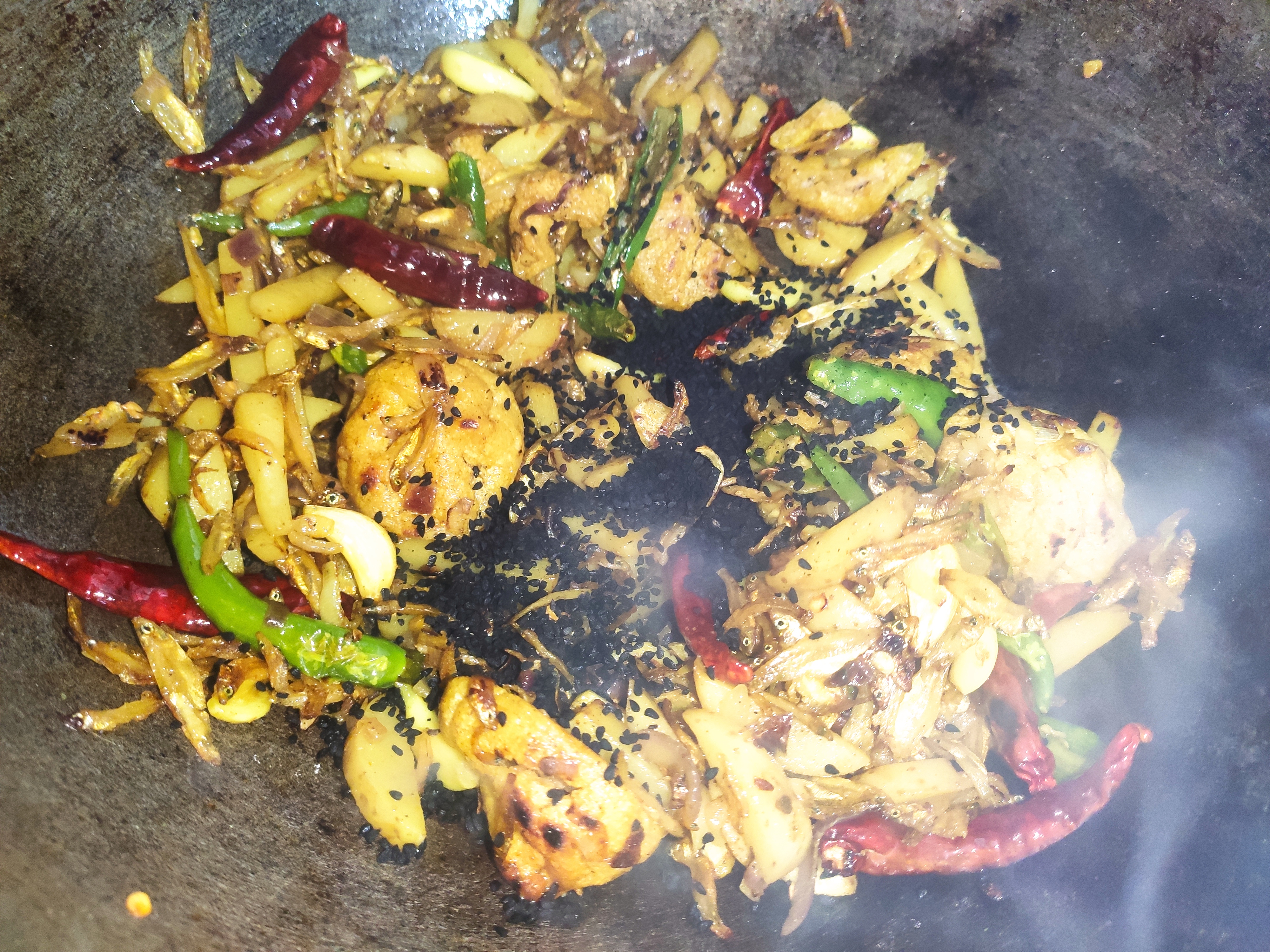 ৫: একটু ভেজে শুকনা মরিচ ও কালো জিরে গুলো দিয়ে দিতে হবে ও ভালো করে ভাজতে হবে।
