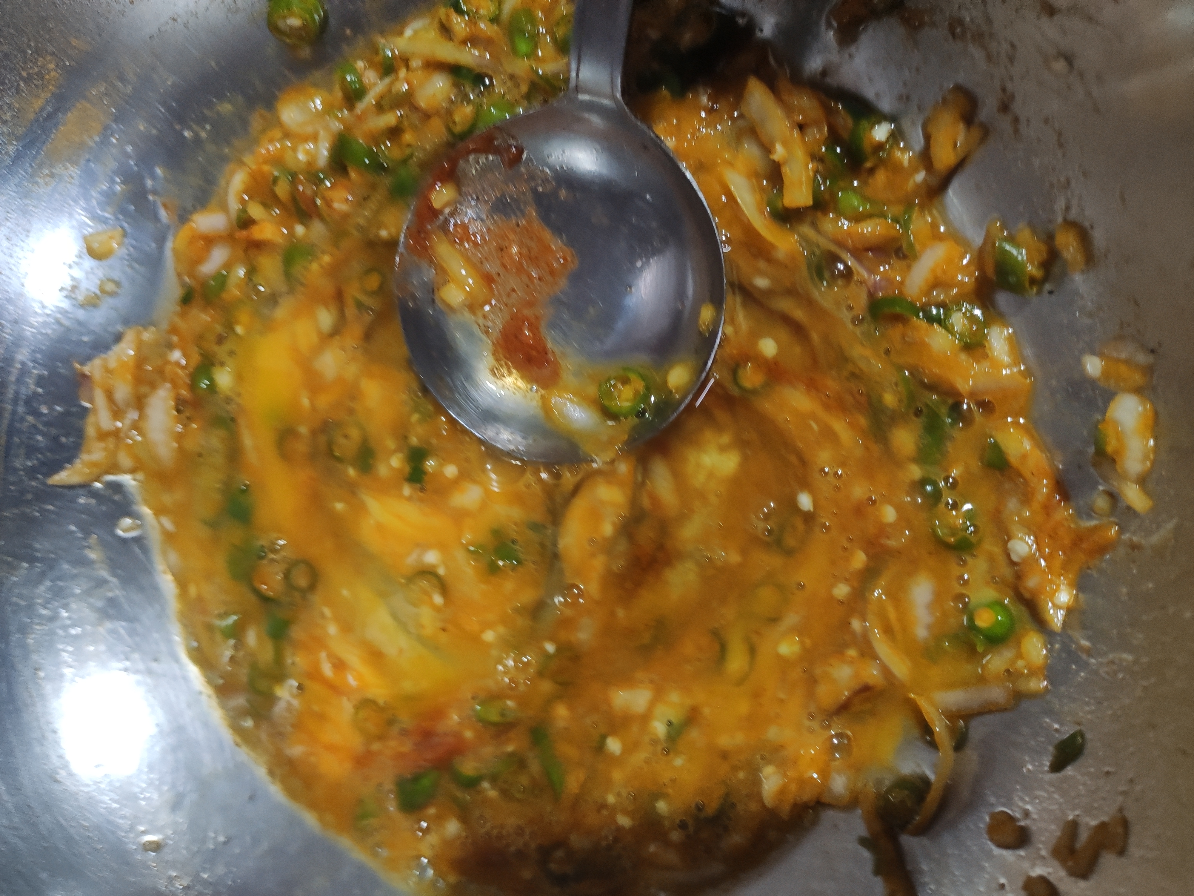 ৩:পেঁয়াজ ও কাঁচা মরিচ কুচি গুলো লবন, ঝালের গুঁড়ো ও নুডলস এর মসলা দিয়ে চটকে নিতে হবে।