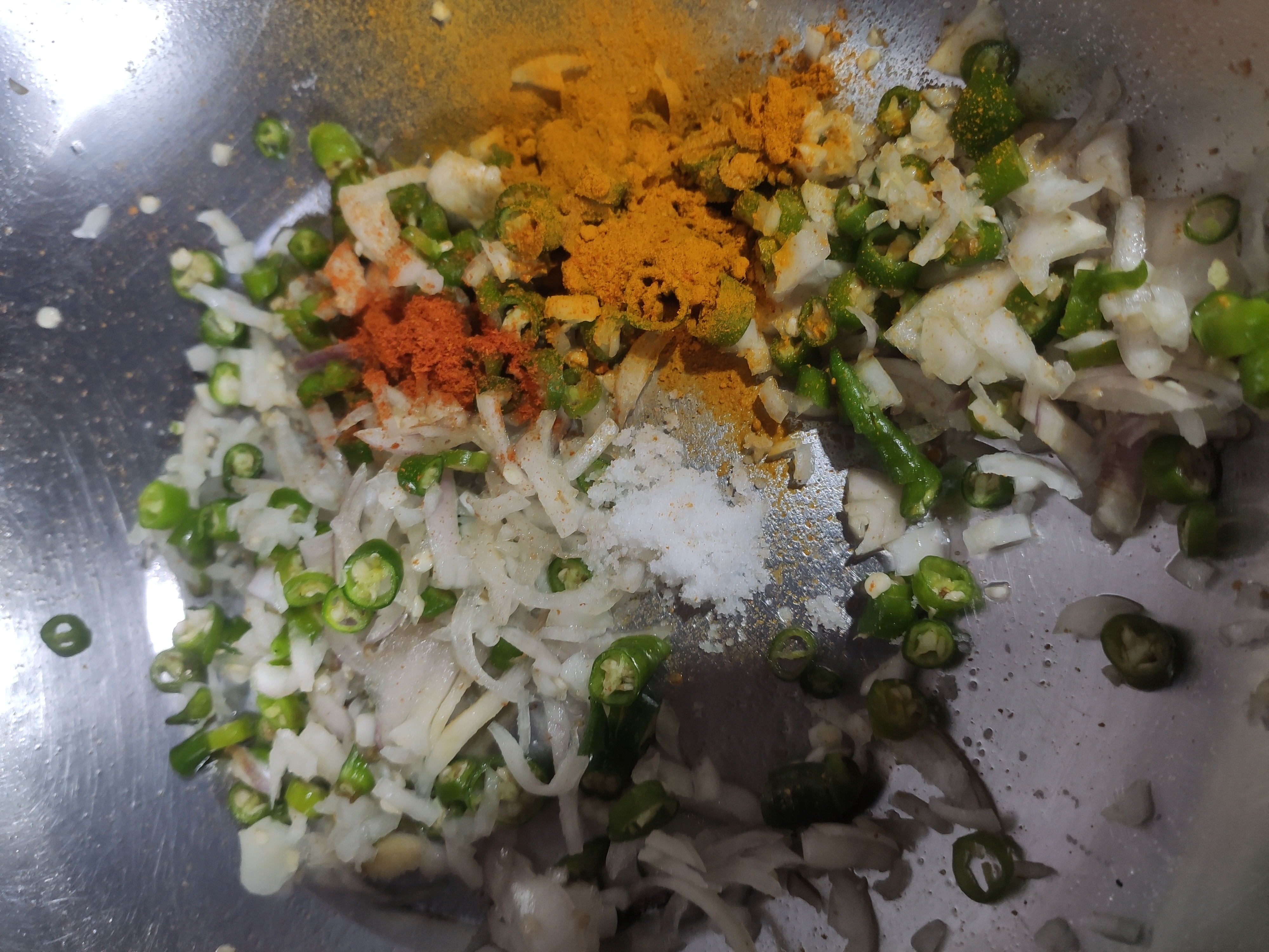 ১: শুরুতে পেঁয়াজ ও মরিচ গুলো ভালো করে ধুয়ে কুচি কুচি করে কেটে নিতে হবে।